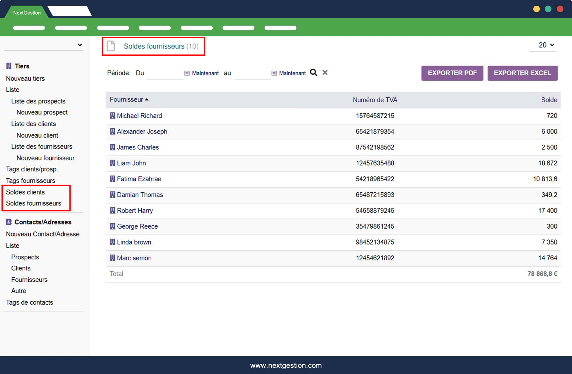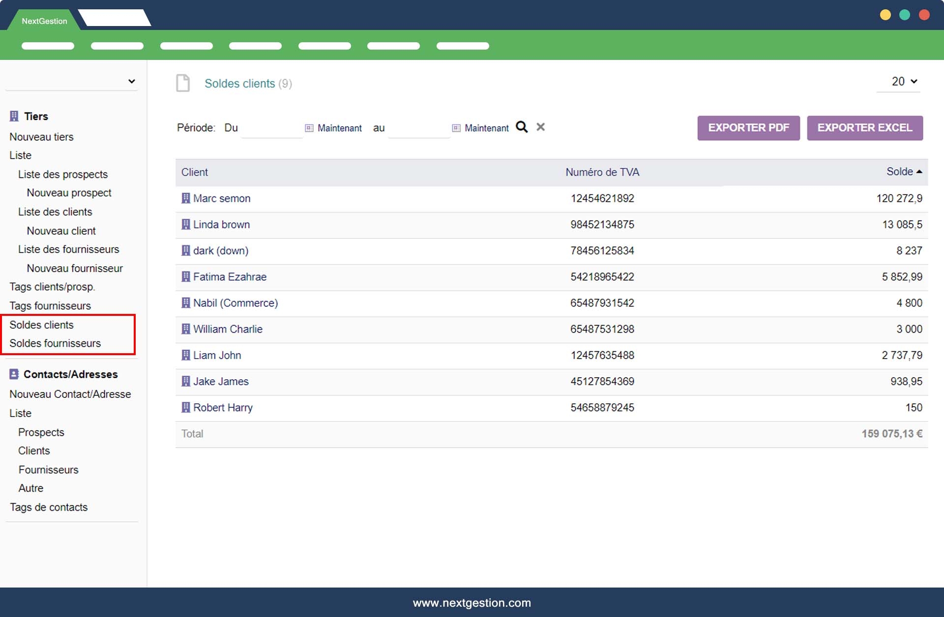 Das Modul „Salden von Lieferanten und Kunden von Dolibarr“ ermöglicht es Ihnen, Ihre Salden in Echtzeit abzurufen in Bezug auf: