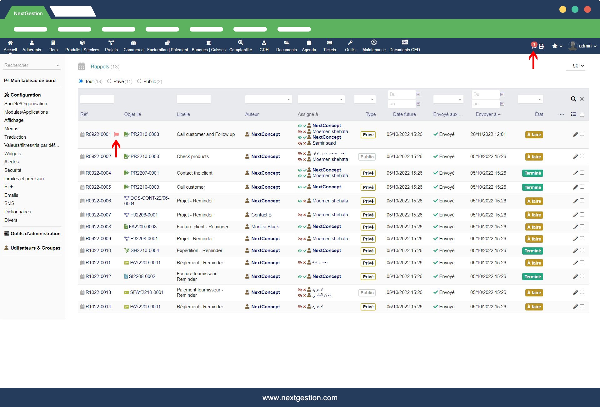 DoliReminder alarmiert in Form von Benachrichtigungen im Dolibarr ERP und per E-Mail.