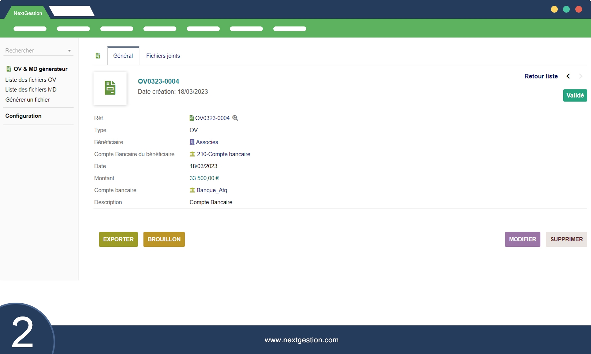 Das Modul Überweisungsauftrags- und Auszahlungsgenerator ist ein Finanzverwaltungstool, das die Erstellung, Ausführung und Überwachung von Bankgeschäften, insbesondere Überweisungen und Auszahlungen von Geldern, erleichtern soll. Hier sind die Hauptmerkmale dieses Moduls: