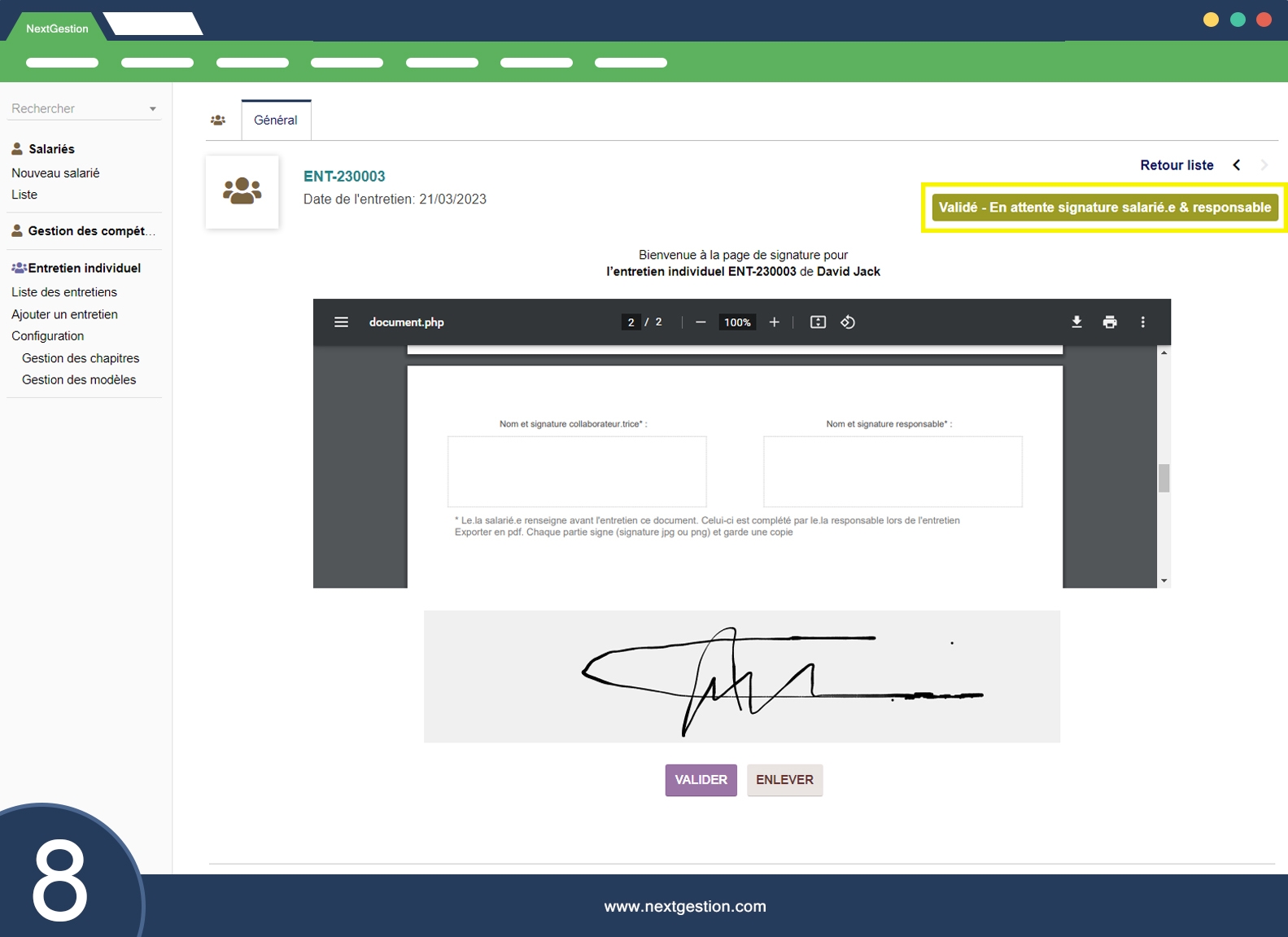 8- Unterschrift des Mitarbeiters und des Interviewleiters: Formale Bestätigung des Interviews durch beide Parteien.