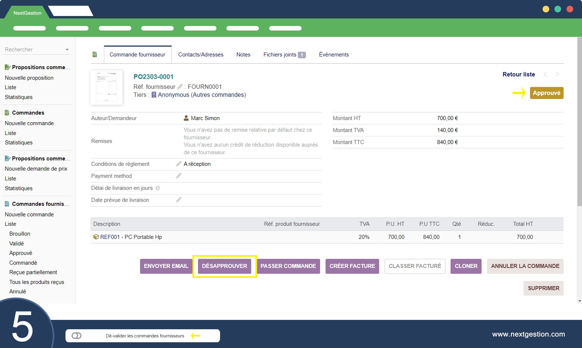 3- Auftragsverwaltung: Autorisierte Benutzer können Kunden- und Lieferantenaufträge validieren oder entwerten. Diese Funktion stellt sicher, dass Bestellungen korrekt aufgegeben und verarbeitet werden und den internen Unternehmensregeln und -prozessen entsprechen.