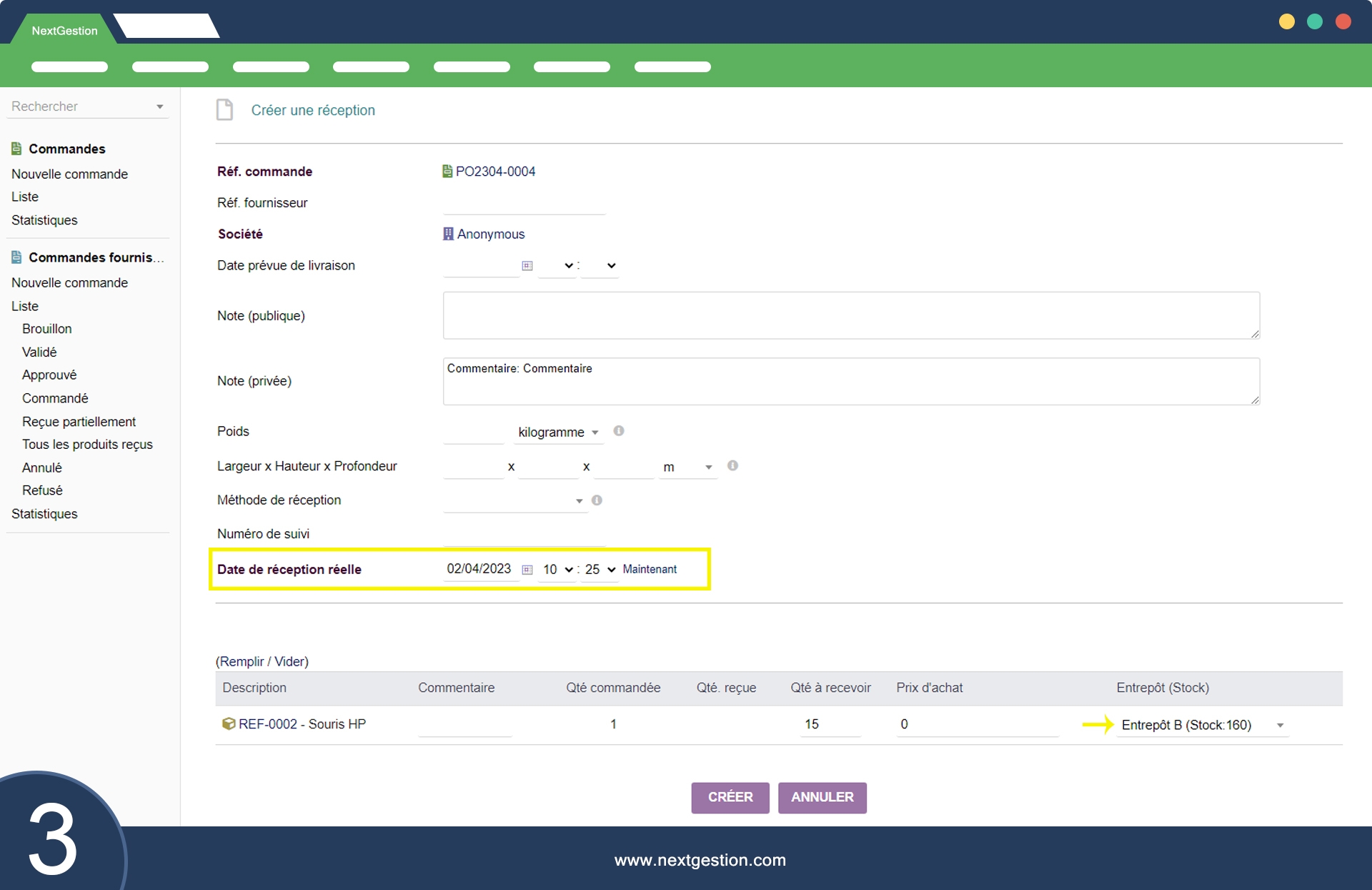 Très utile pour suivre précisément les dates de réception en stock. Beaucoup plus clair.