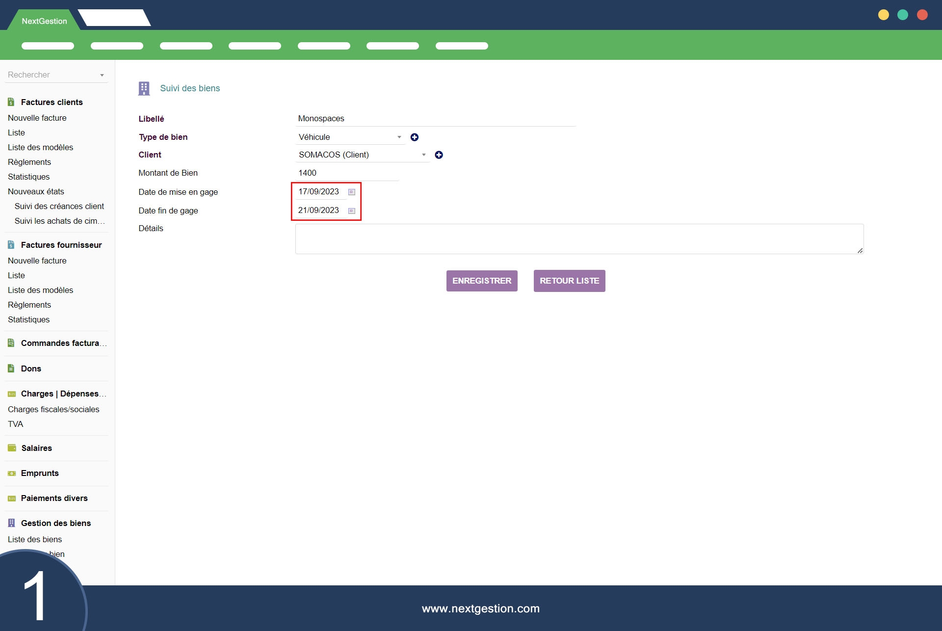 1- Vermögenserklärung: Sie können die wesentlichen Informationen zu jedem Vermögenswert erfassen, einschließlich des Namens, der Art des Vermögenswerts (z. B. Immobilie, Fahrzeug, Grundstück), des zugehörigen Kunden, des Betrags des Vermögenswerts und des Pfanddatums und Ende der Verpfändung sowie weitere Einzelheiten.