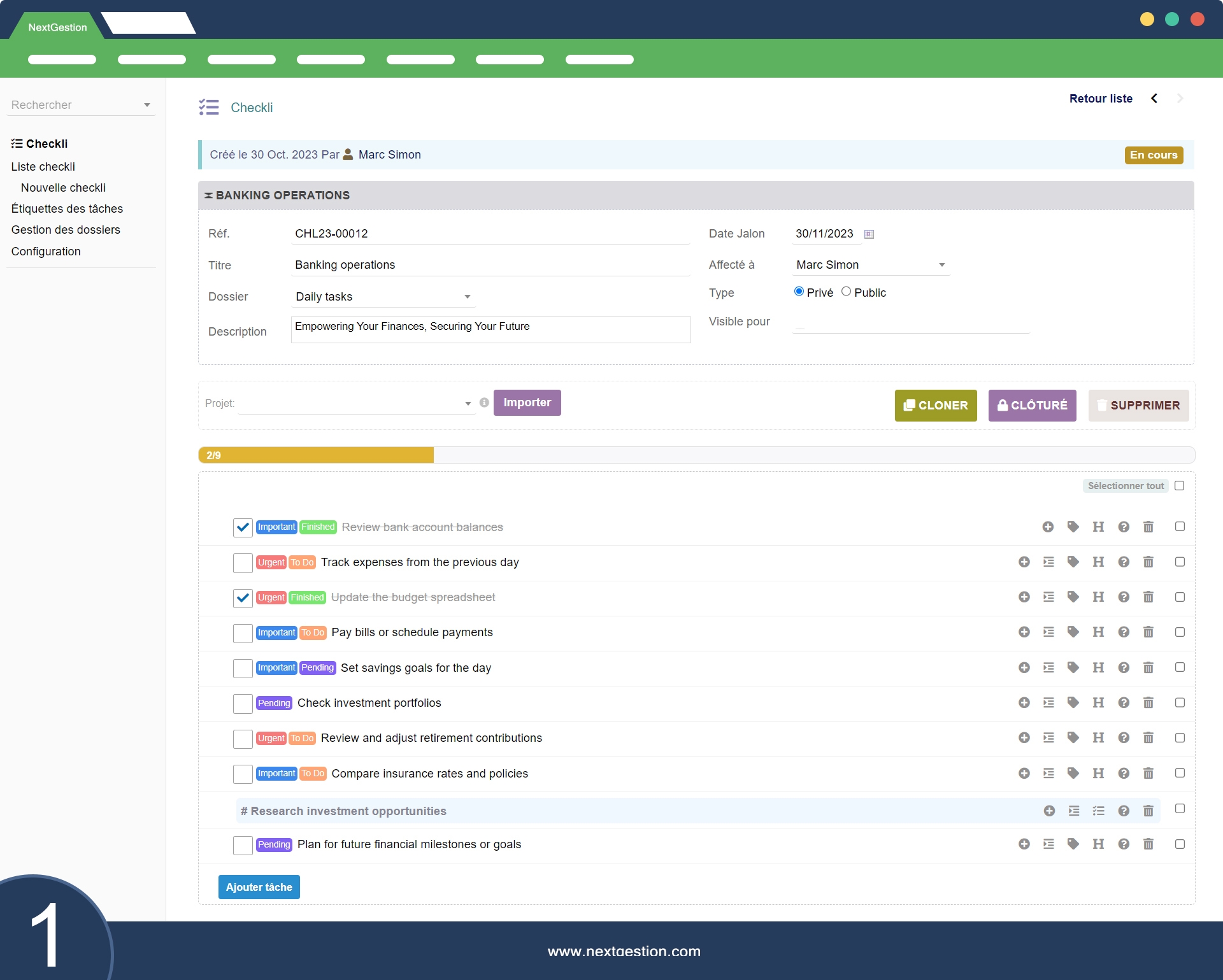 Checkli est un excellent module pour structurer les tâches et procédures. Très pratique pour le suivi quotidien.