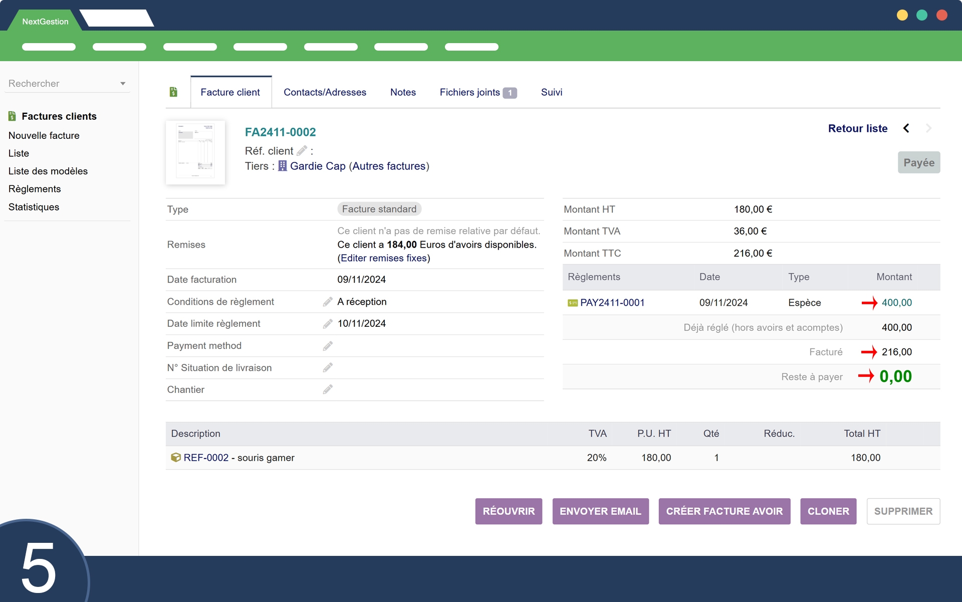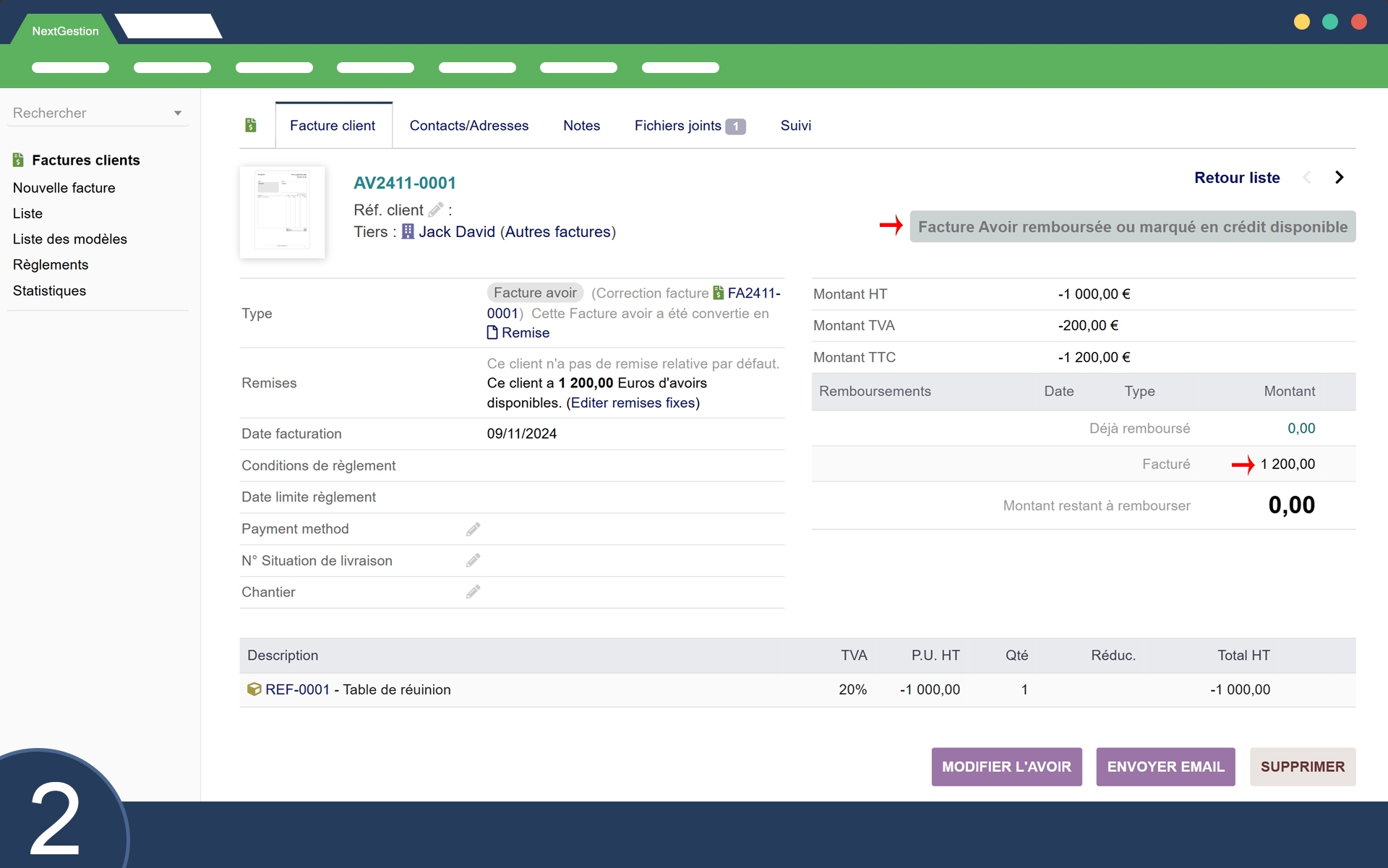 Wenn eine Gutschriftsrechnung erstellt wird, wird deren Betrag automatisch in ein für den Kunden verfügbares Guthaben umgewandelt, ohne dass ein manueller Eingriff erforderlich ist.