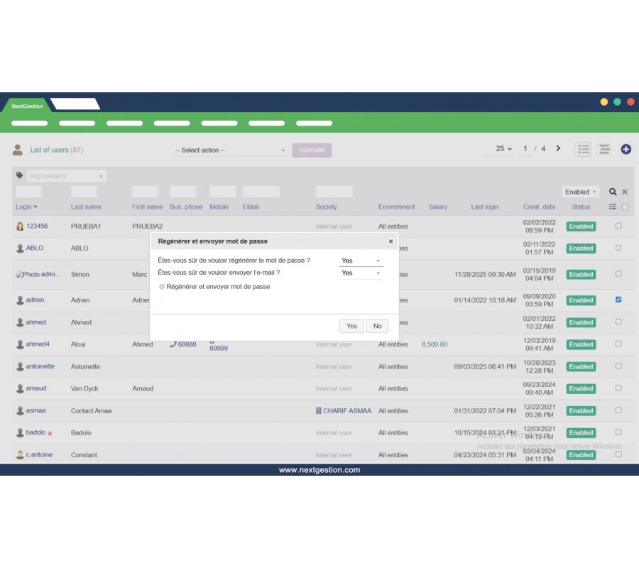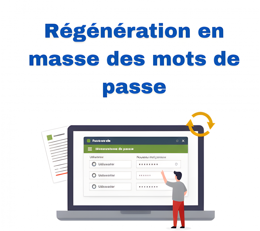 Das Modul „Regenerazione massiva delle password“ ermöglicht es, die Passwörter mehrerer Dolibarr-Benutzer in einem einzigen Vorgang zurückzusetzen und die neuen Zugangsdaten automatisch per E-Mail zu versenden. Es eignet sich ideal, um eine neue Sicherheitsrichtlinie umzusetzen, einen Produktivstart vorzubereiten oder schnell nach einem Sicherheitsvorfall zu reagieren.