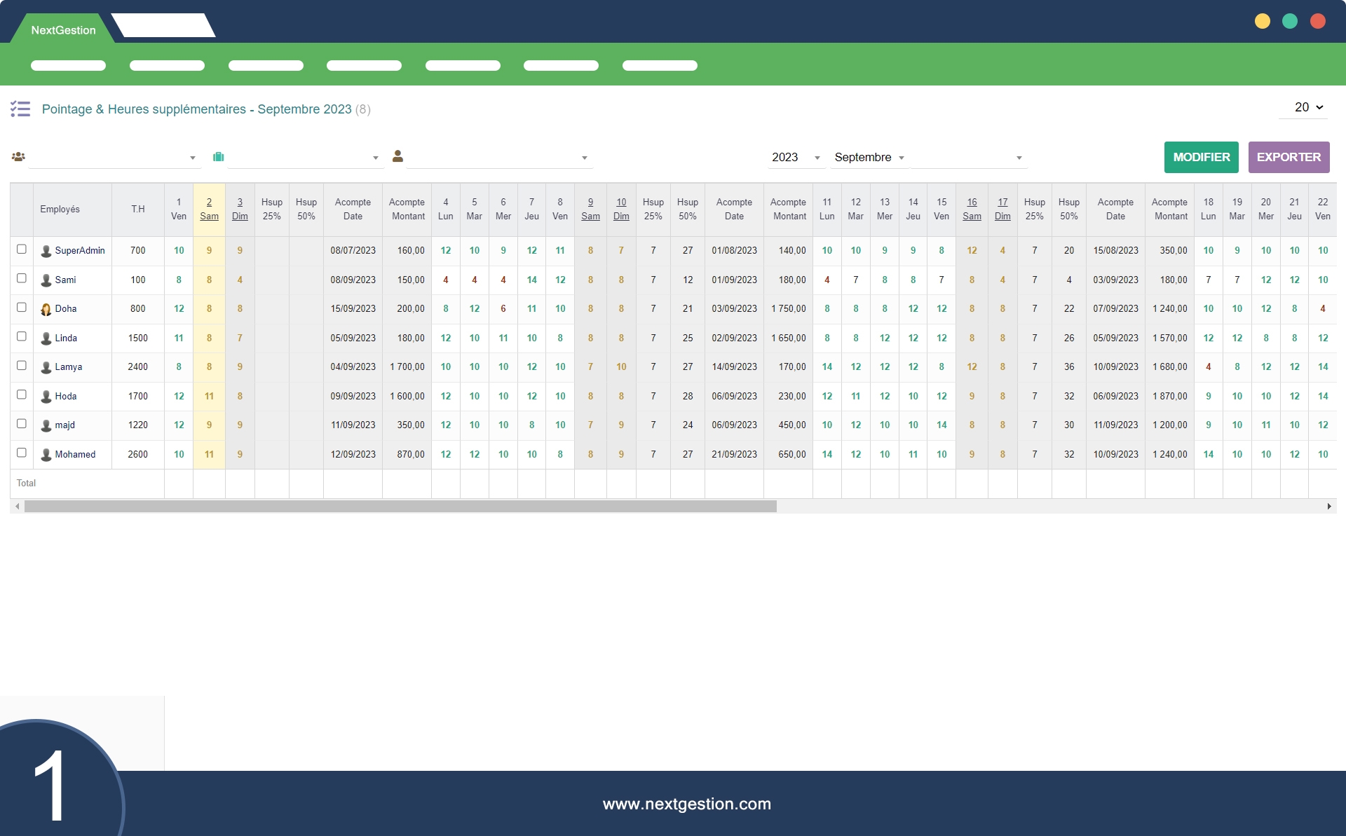 Parfait pour éviter les erreurs sur les heures supplémentaires en fin de mois.