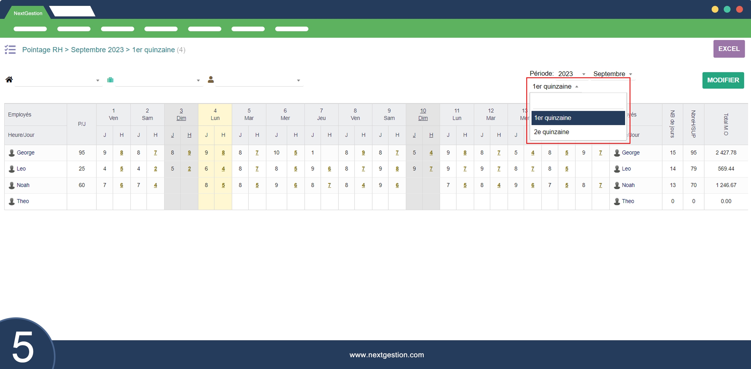 Module très pratique pour le suivi des heures de travail. Le pointage est simple et clair pour les salariés comme pour l’administration.