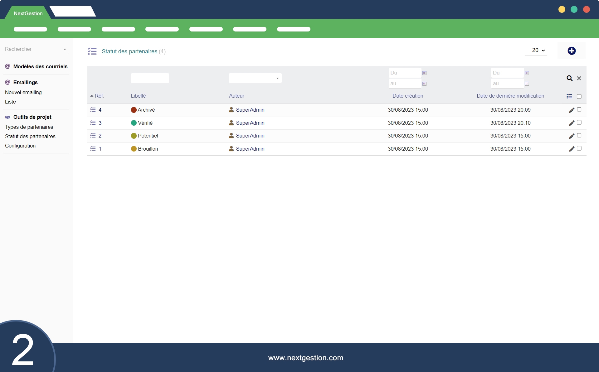 The "Project Partners" module simplifies the management of project partners, providing a comprehensive overview of their types, statuses, and other relevant information. It contributes to better project and third-party organization, enhancing the efficiency of your operations management.