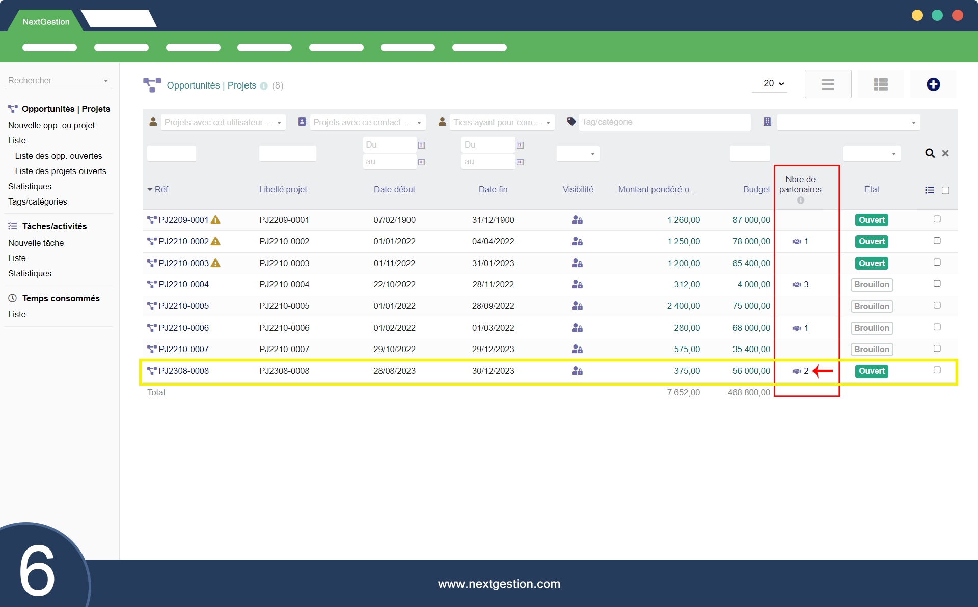 Addition of a new tab in the Project card (in the second position) named "Project Partners."