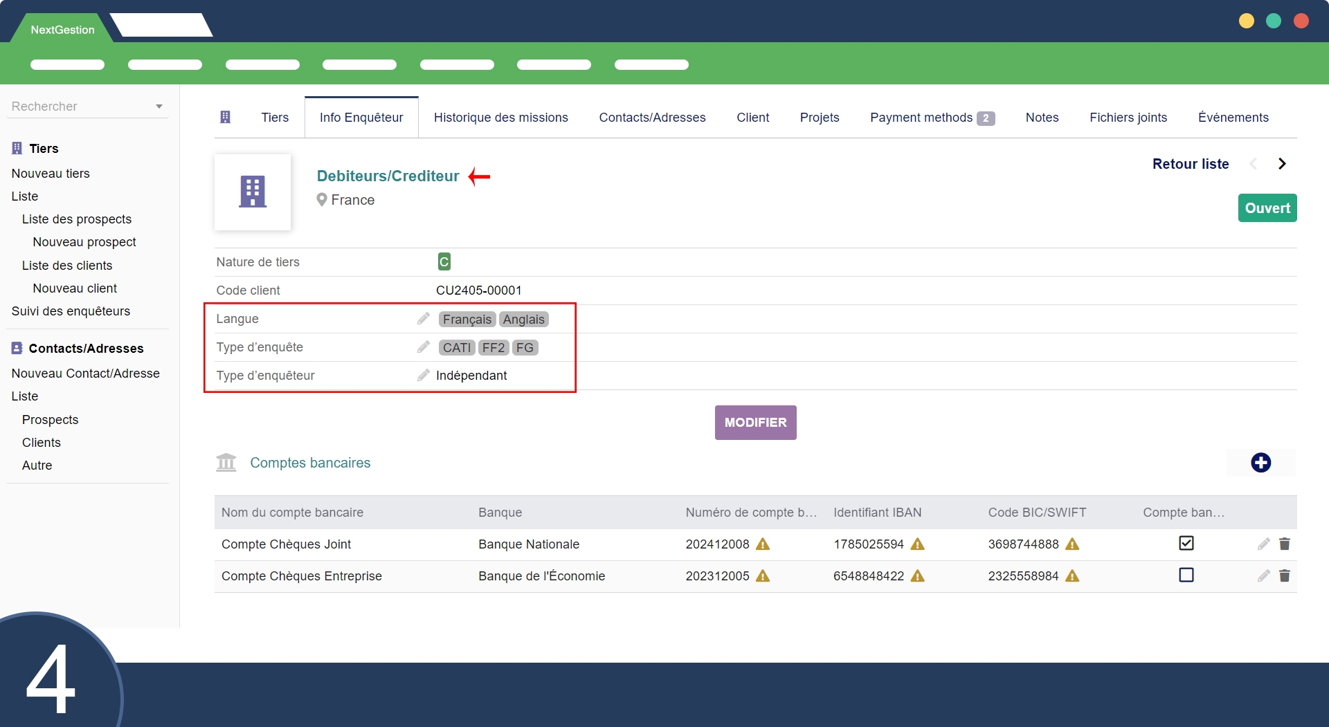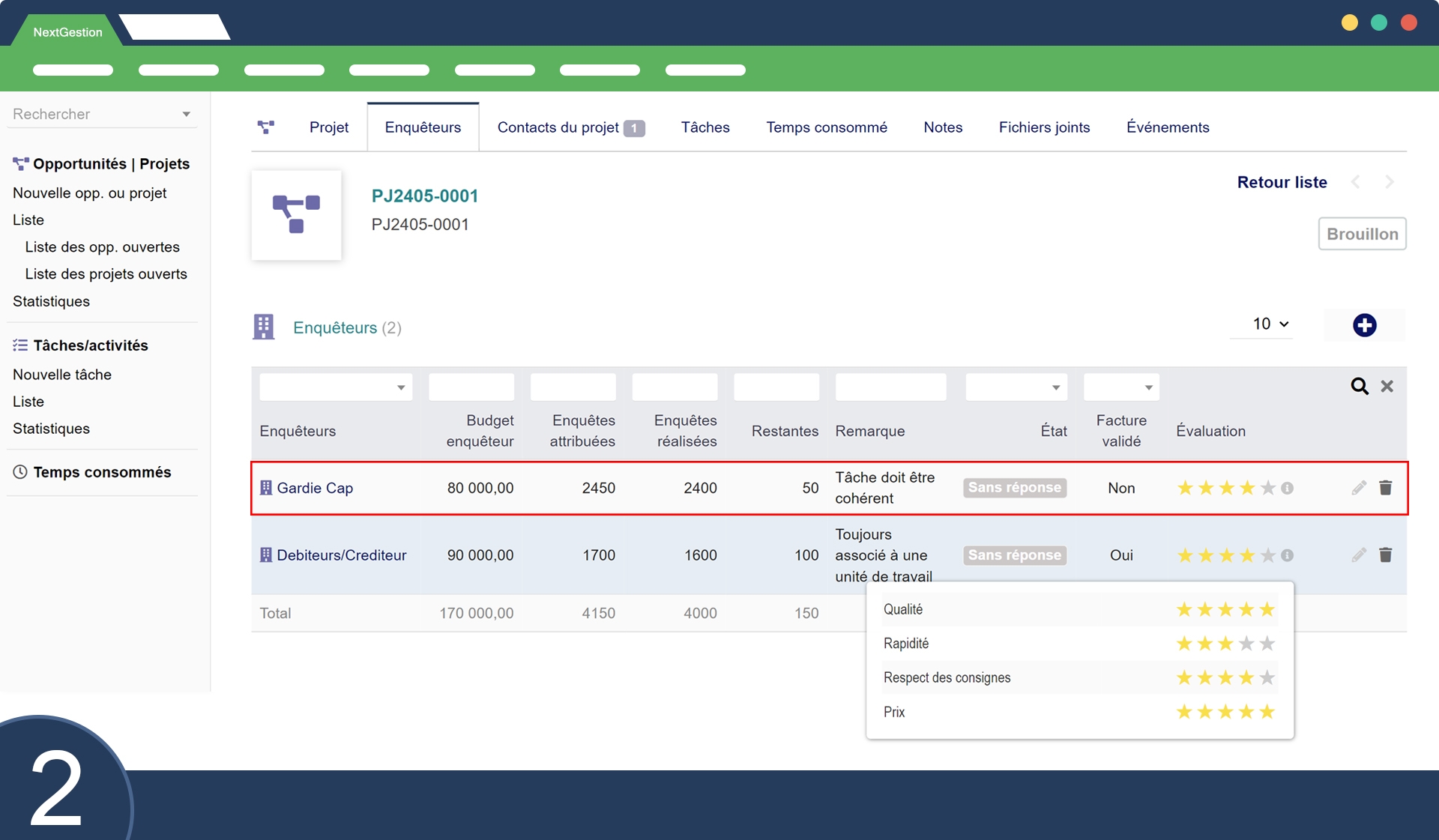 This module allows you to effectively manage external investigators, monitor the progress of their missions, evaluate their performance and provide a detailed view by project and by investigator. It helps to optimize the carrying out of market research.
