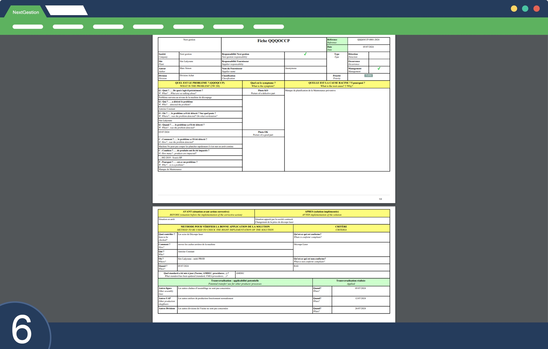 This tool is particularly useful in problem solving, project management, and process improvement. Here is a detailed description of the functionalities that I developed in our ERP for each element of QQOQCCP: