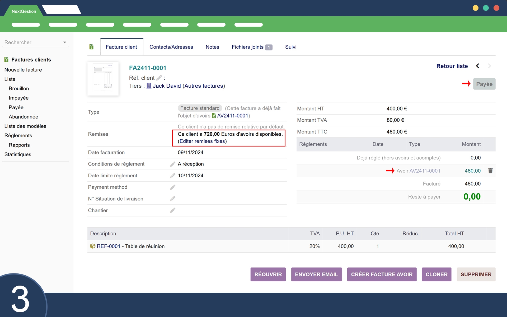 The "Credit Status" module optimizes the management of credits and overcharges of invoices, by automating their conversion into credits available for future use. It offers a smooth and efficient solution for processing customer discounts and credits, improving cash management and customer satisfaction.