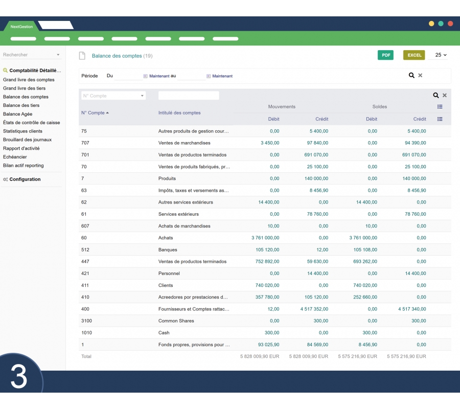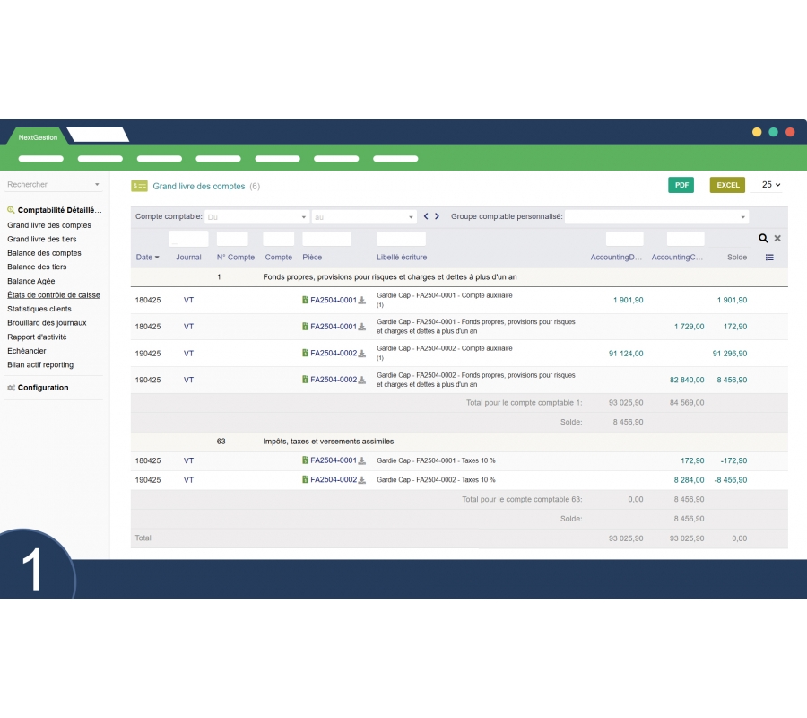 The Detailed Sage Accounting Module from NextGestion is a fully comprehensive accounting solution, designed to meet the highest professional standards. Inspired by the logic and structure of Sage software, it enables centralized, precise financial management, ensuring traceability, transparency, and efficient decision-making.