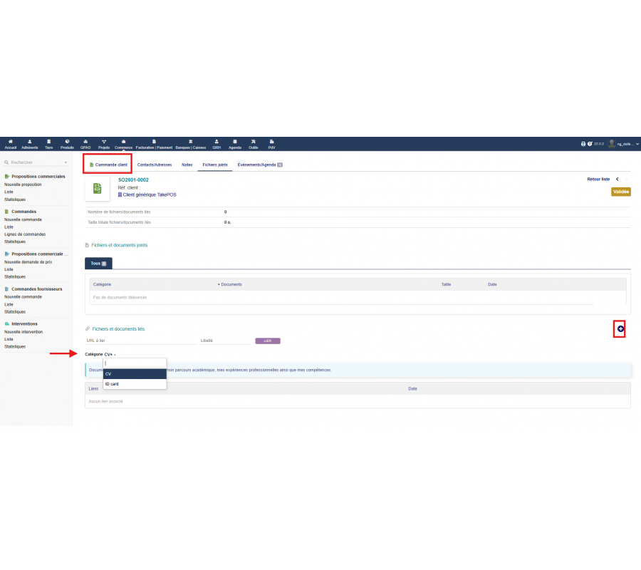 The module allows documents (ID, proof of address, income documents, etc.) to be categorized and automatically made accessible across multiple related modules such as third parties, projects, or commercial proposals.