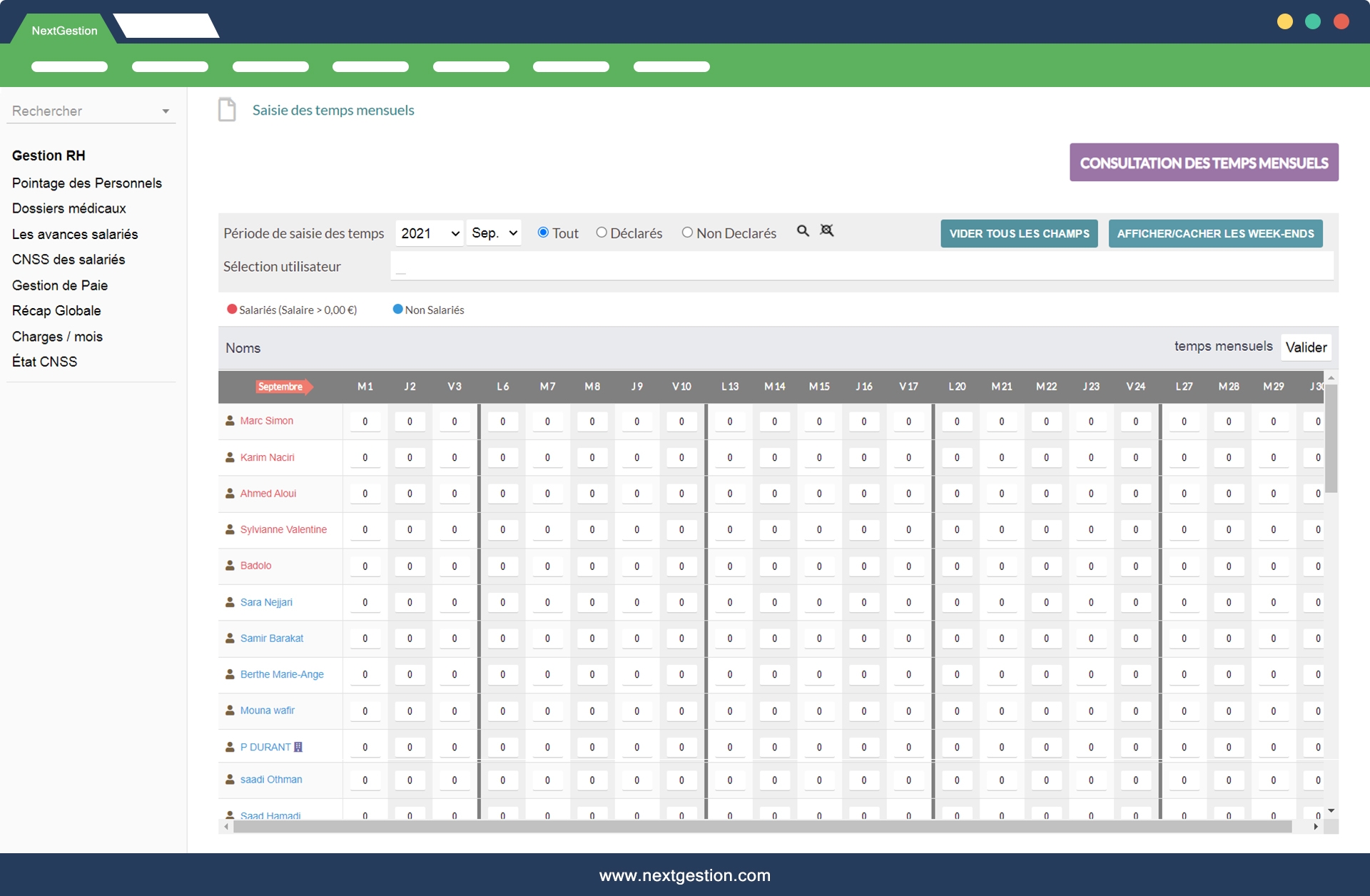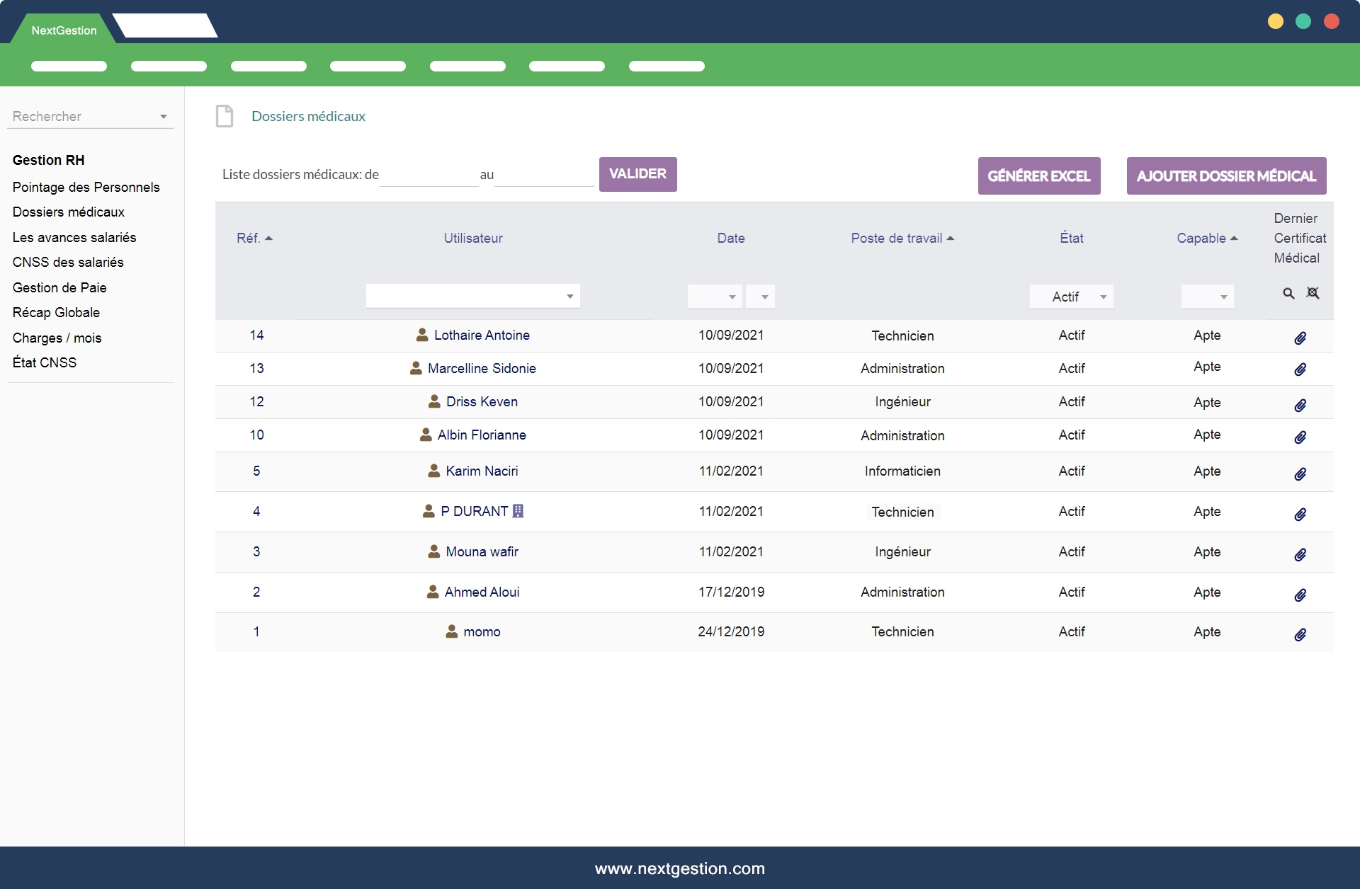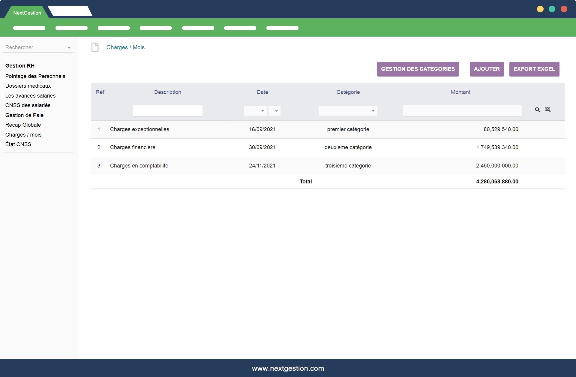 2- Medical records 3- Employee advances 4- CNSS employees 5- Payroll Management 6- Global Recap 7- Charges / month 8- CNSS State Login: demoPassword: demoIf you order our module you benefit from: