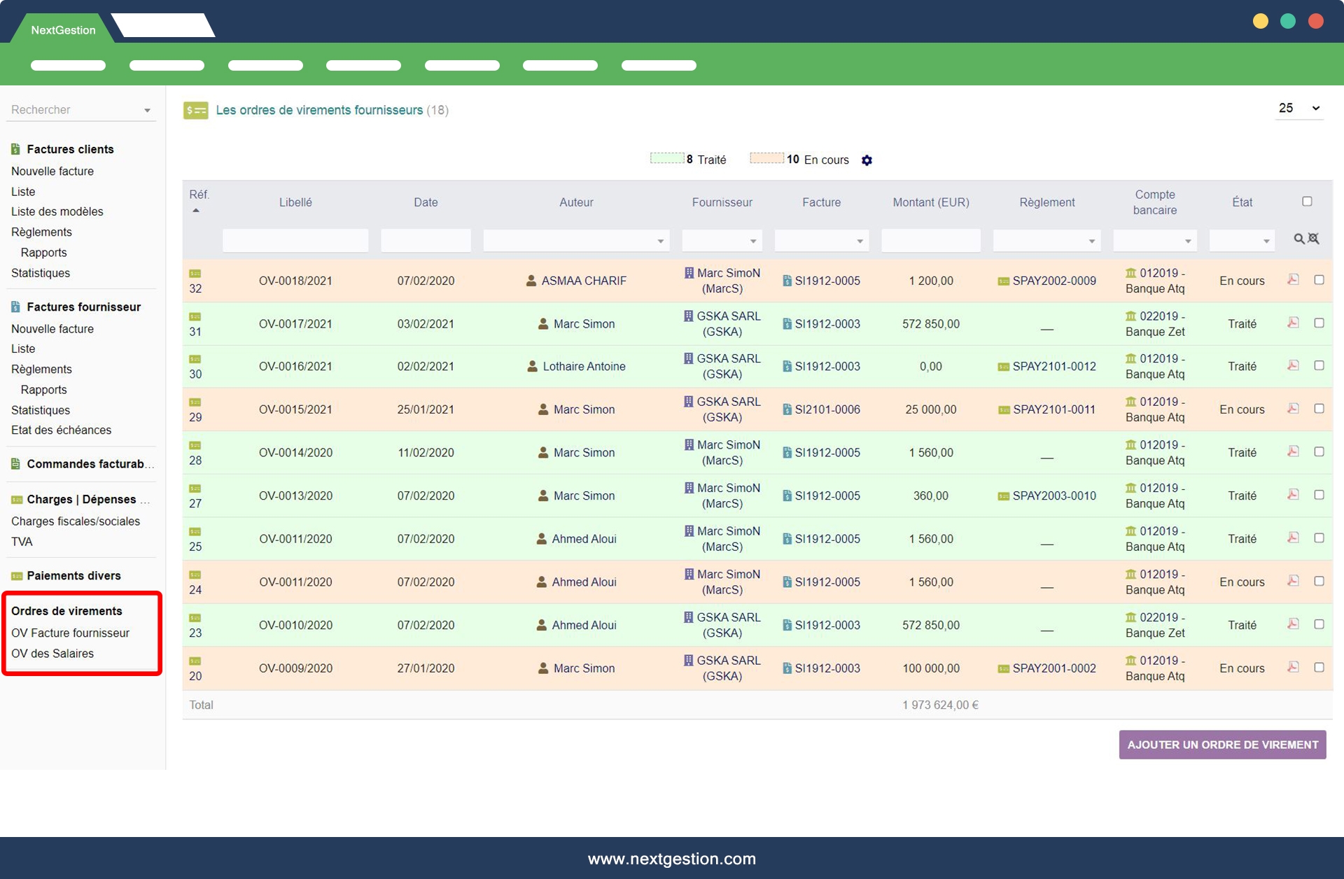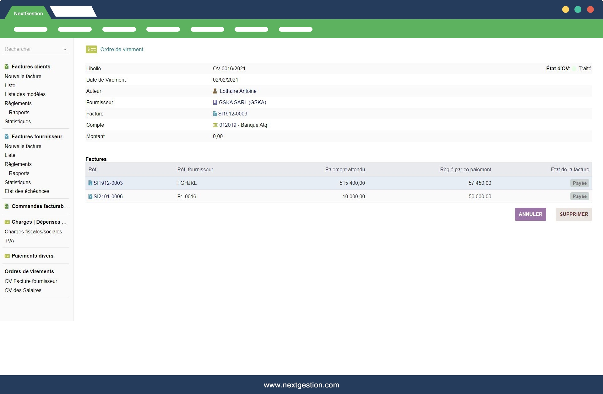 Très pratique pour préparer les virements fournisseurs et les salaires au même endroit.