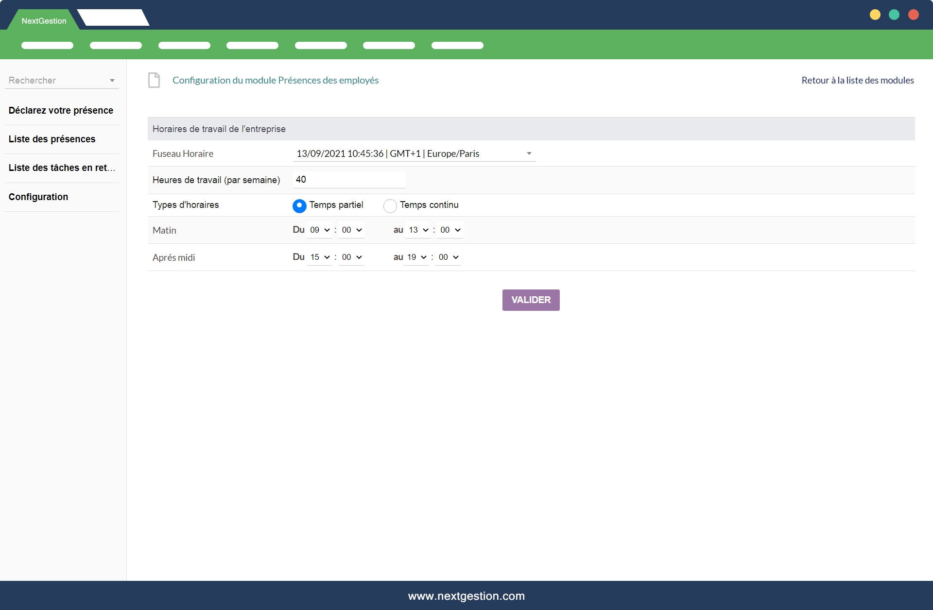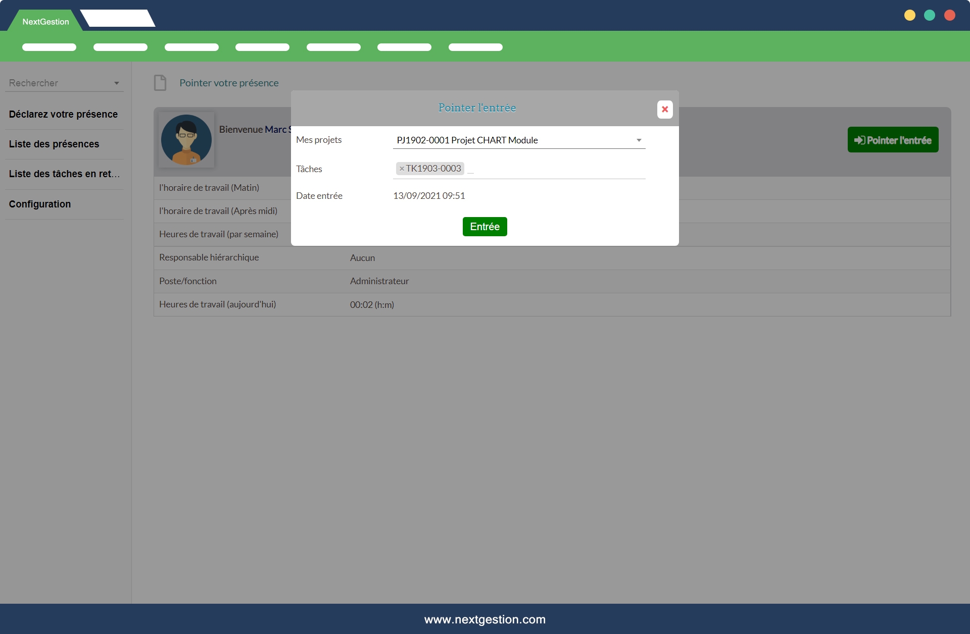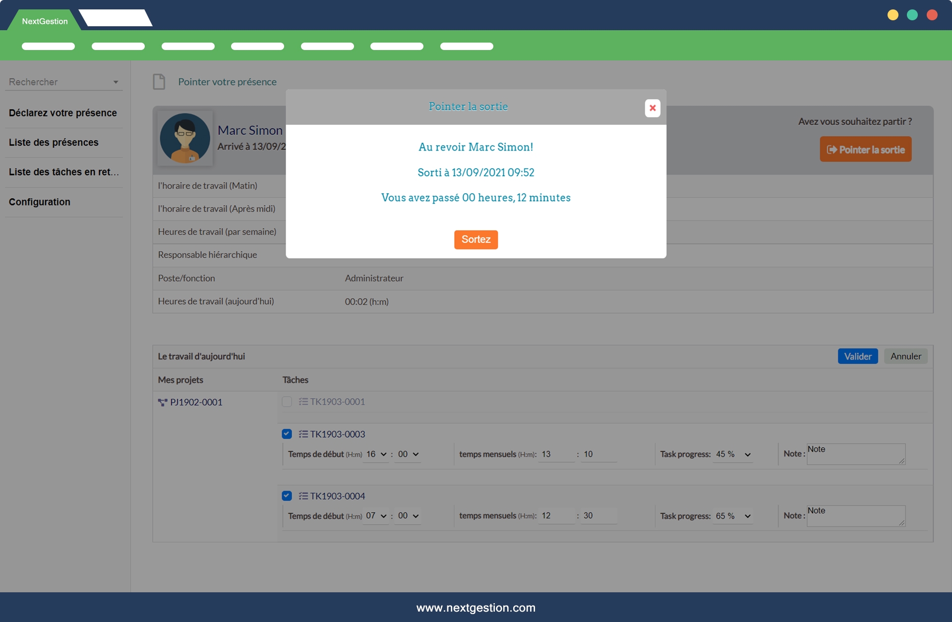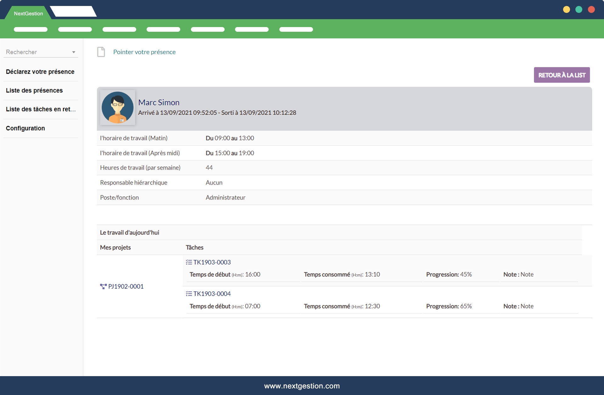 Module très utile pour le suivi du temps. La pointeuse numérique est simple et efficace
