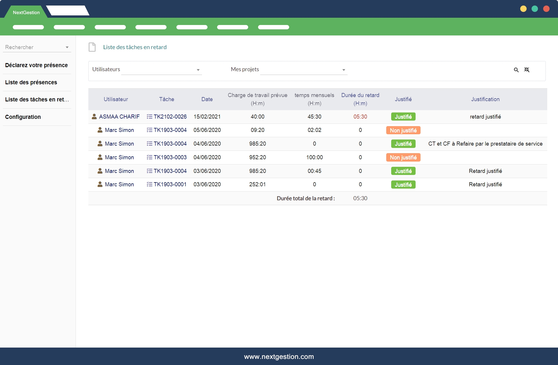 - Please follow up on late tasks and know the justified and unjustified delays of each employee.