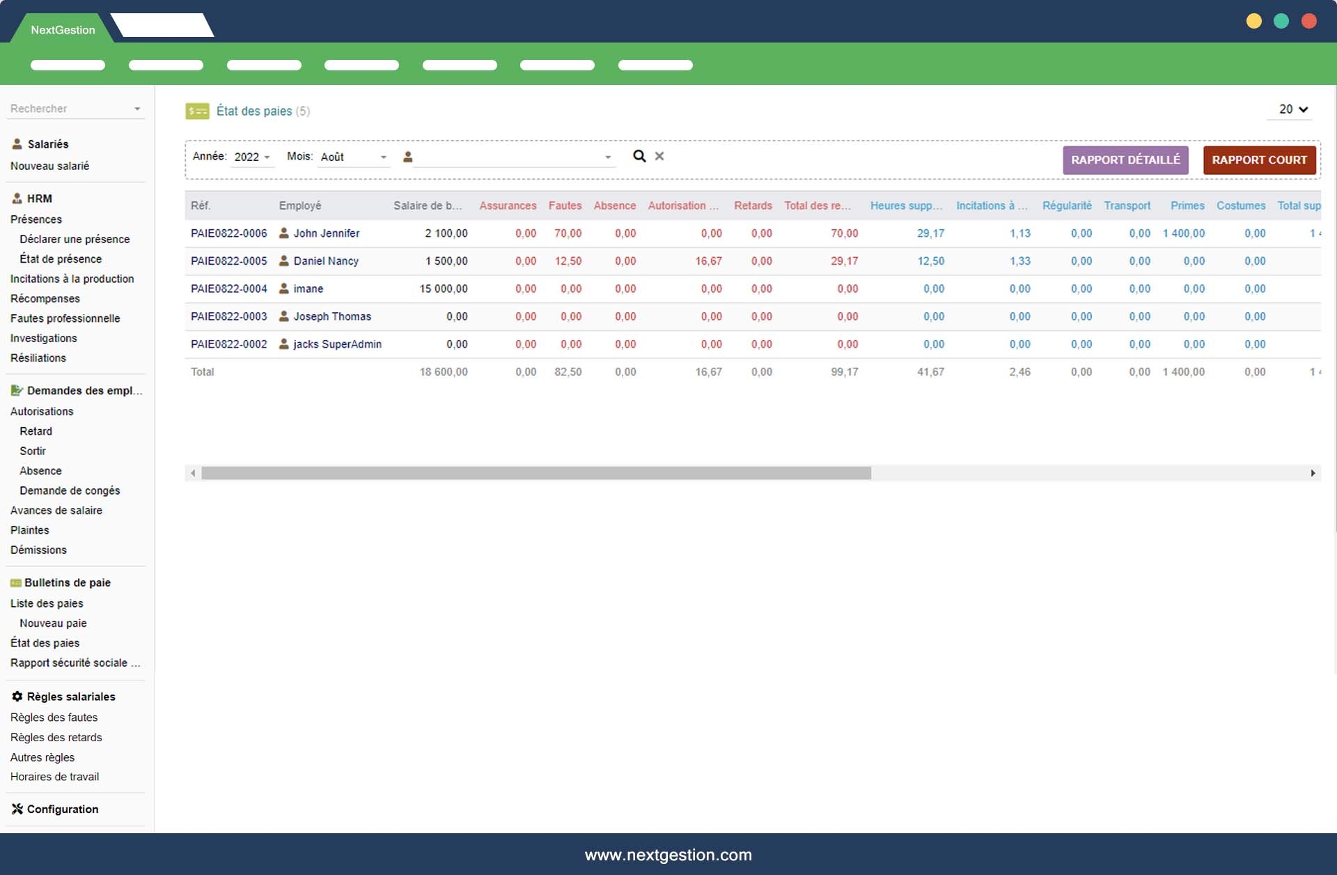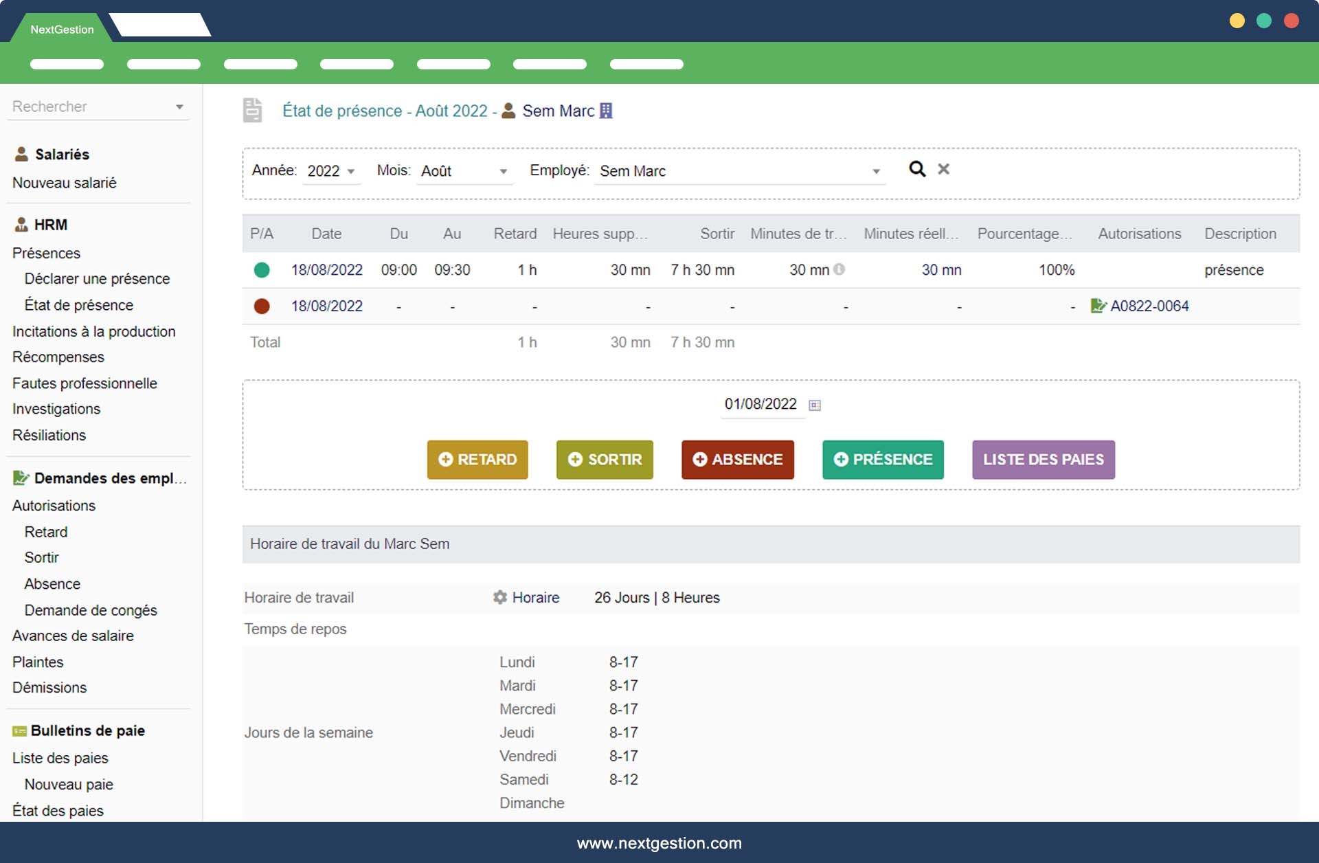 Module RH très structuré. Il centralise parfaitement les informations du personnel et simplifie le suivi administratif.