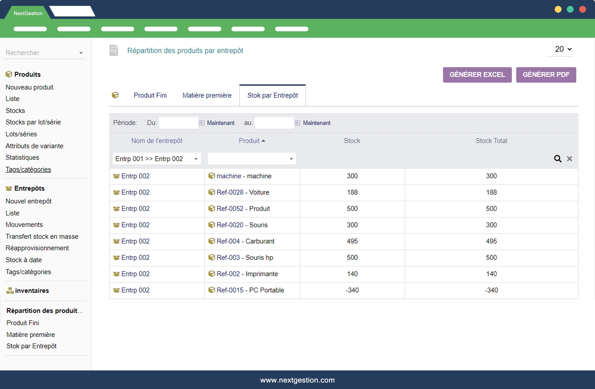 Excellent outil pour analyser rapidement les niveaux de stock par produit et par entrepôt.