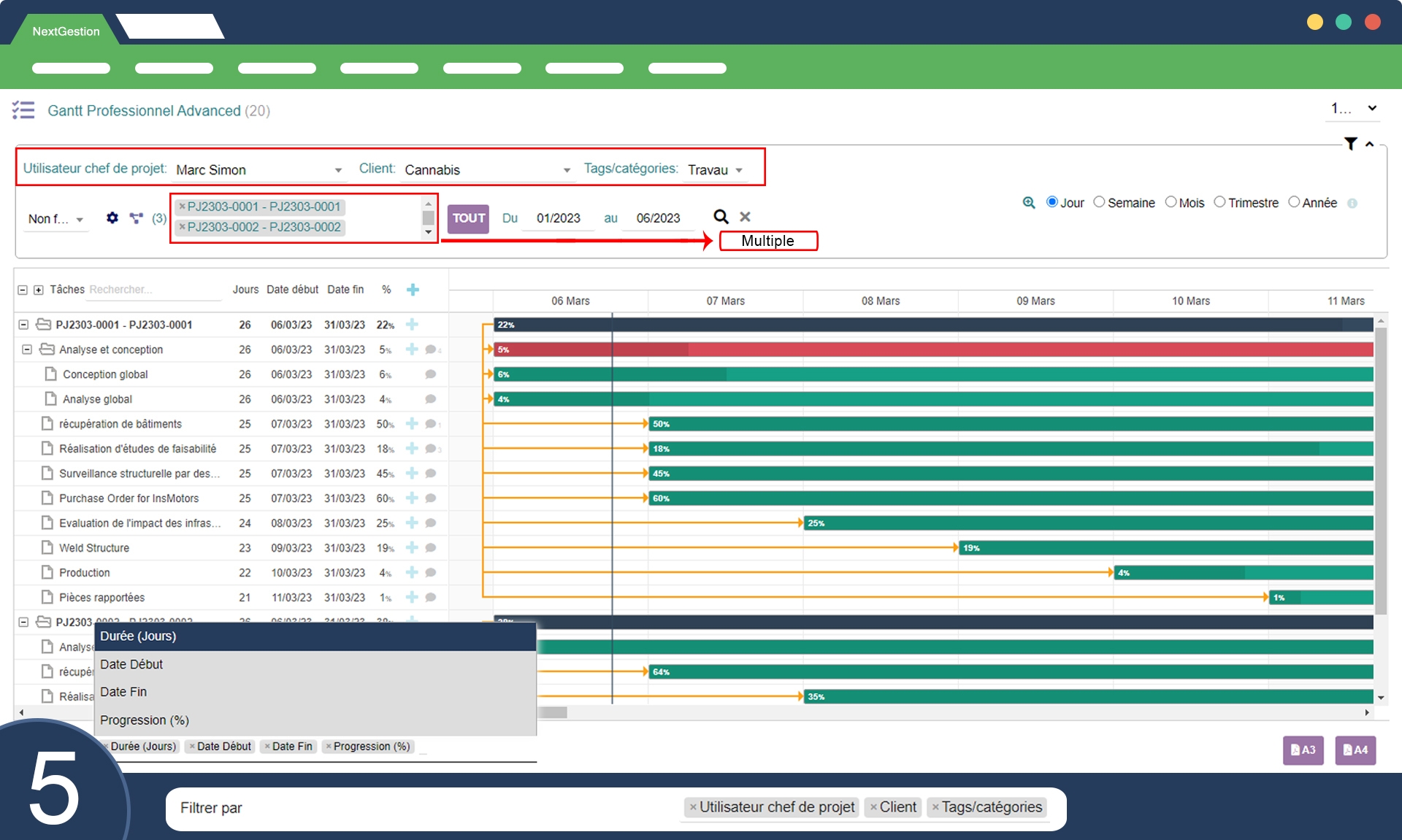 Le module nous aide à structurer nos projets dès le départ. Les dépendances entre tâches sont faciles à comprendre et à ajuster.