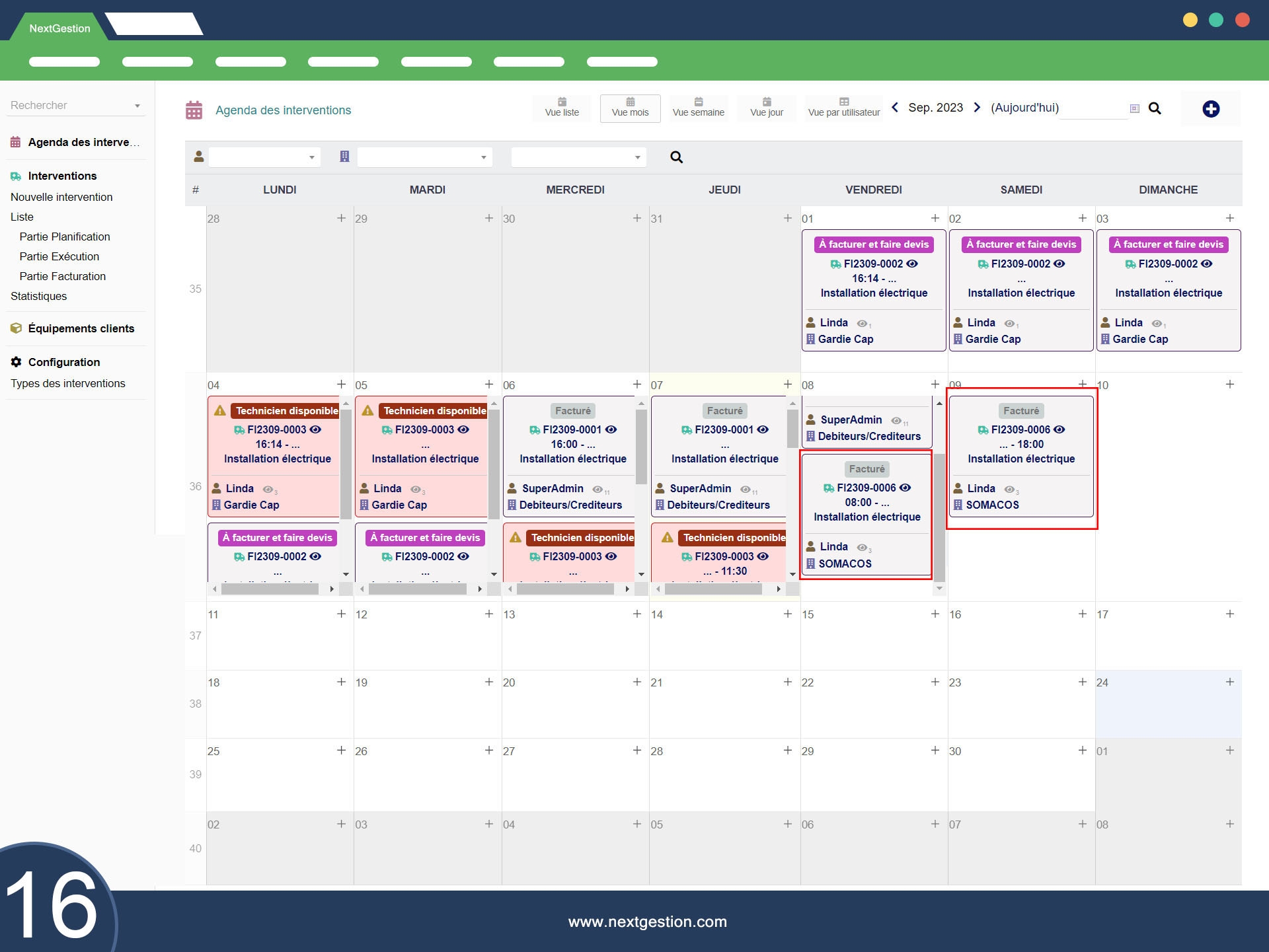 Module extrêmement complet. De la planification à la facturation, tout est fluide et bien pensé.
