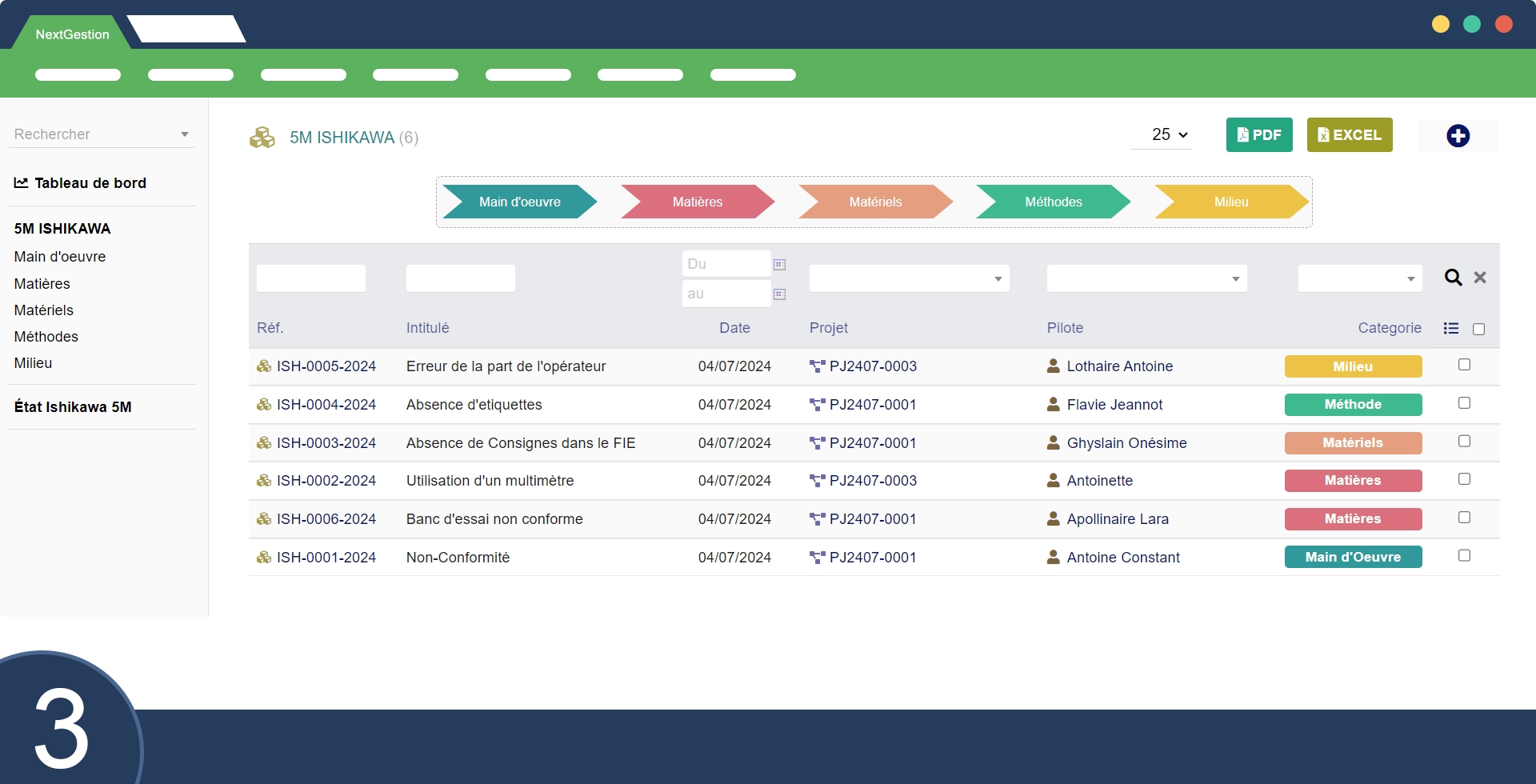 Nuestro módulo le permite enumerar 10 causas principales diferentes en cada una de las 6 categorías.
