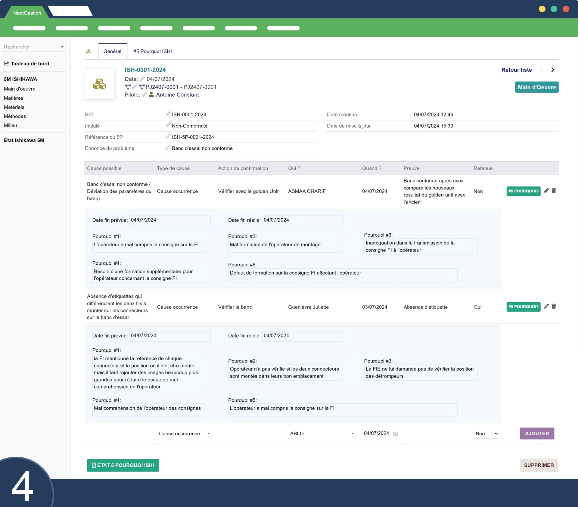Características del módulo de diagrama de espina de pescado ISHIKAWA de 5M: