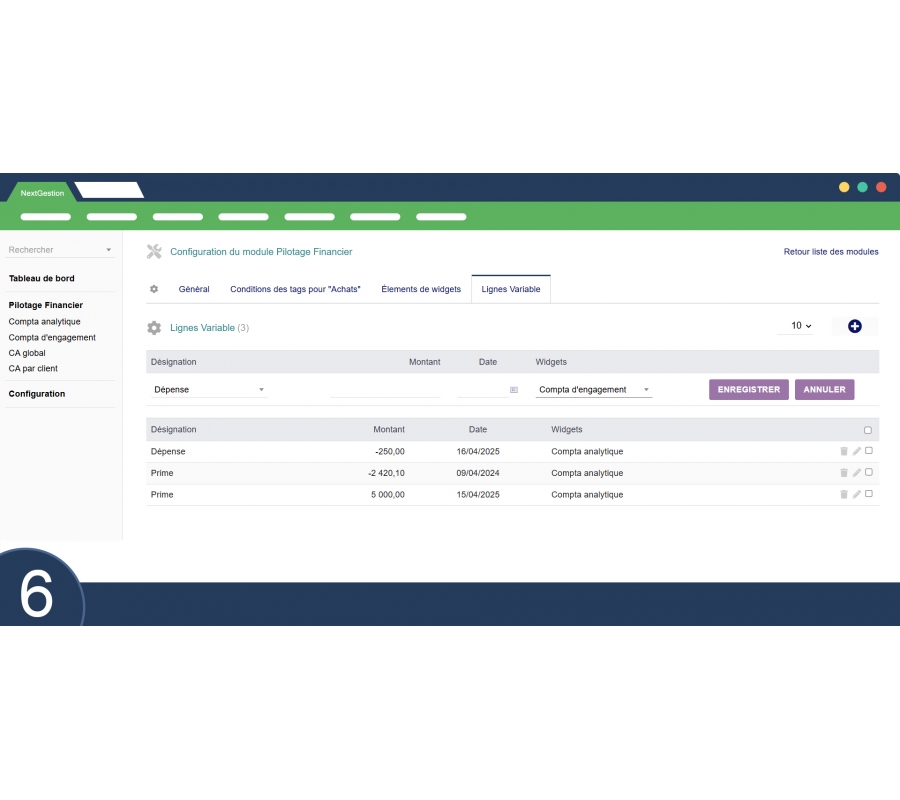Estas configuraciones permiten a la empresa adaptar el módulo a sus necesidades específicas de control financiero.