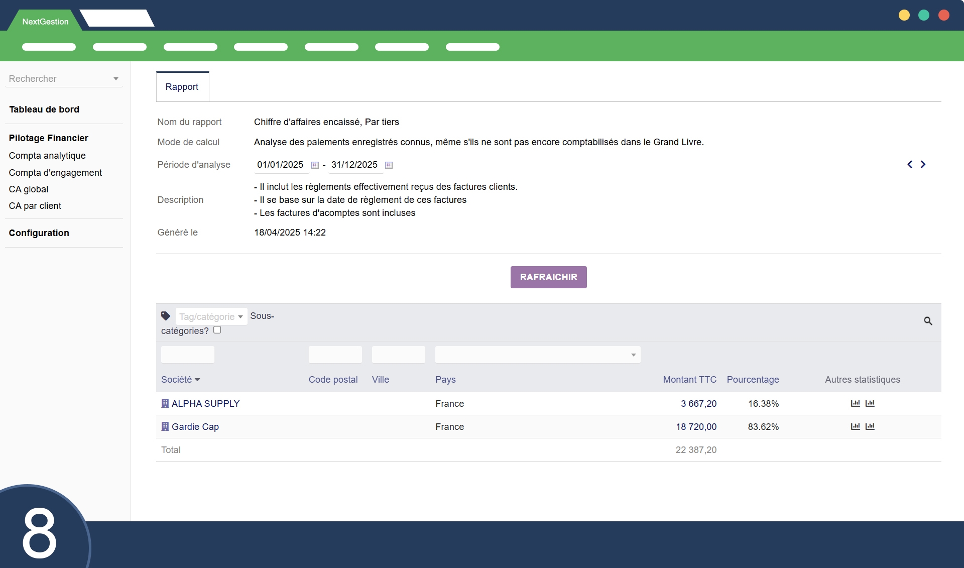 Le module Pilotage Financier nous donne une vision claire de la situation financière. Les indicateurs sont lisibles et faciles à interpréter.