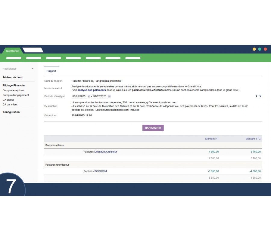El módulo "Gestión Financiera" de Dolibarr ofrece varias funcionalidades clave para una gestión eficaz del desempeño financiero y comercial de la empresa. Aquí hay una descripción de las características: