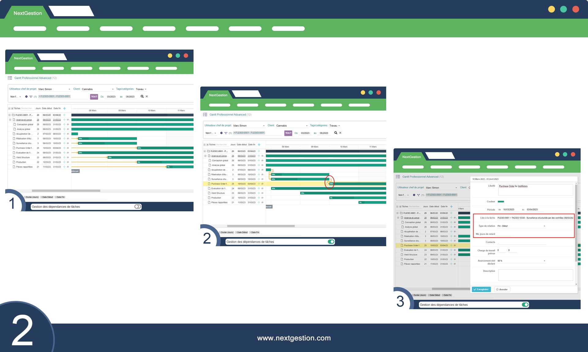 Le module nous aide à structurer nos projets dès le départ. Les dépendances entre tâches sont faciles à comprendre et à ajuster.