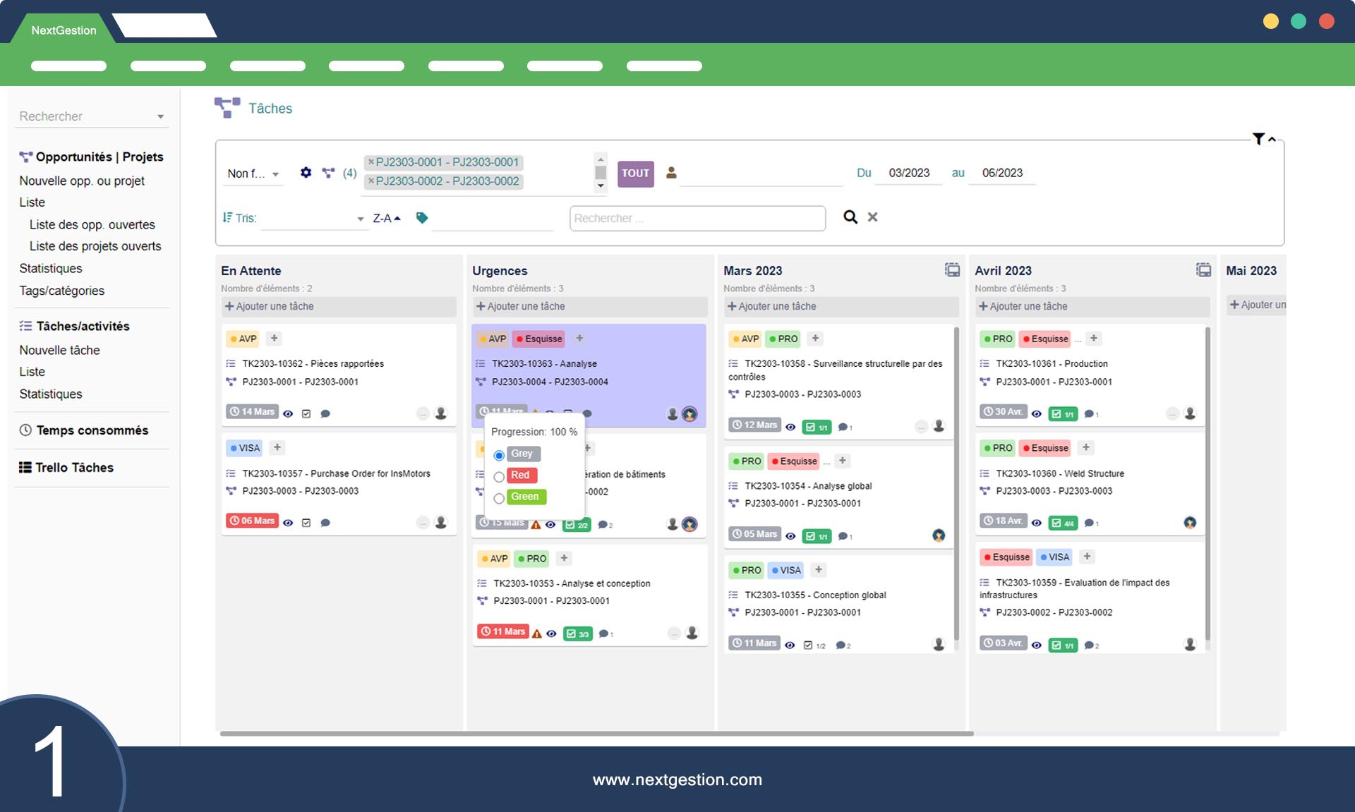 Le module rend la gestion de projet vraiment simple. Les colonnes Kanban sont très intuitives.