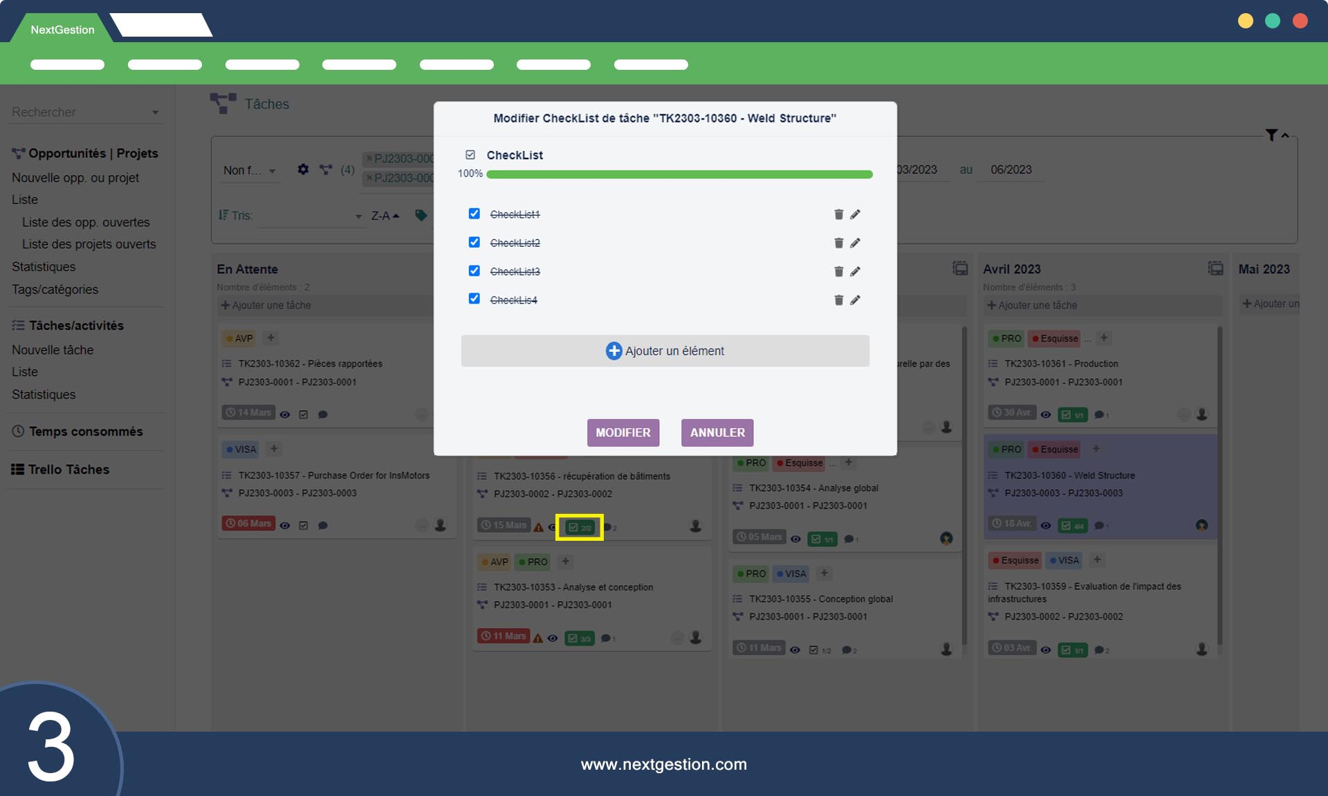 Checklist : il est possible d'ajouter des listes de vérification à chaque carte pour suivre les progrès de la tâche.