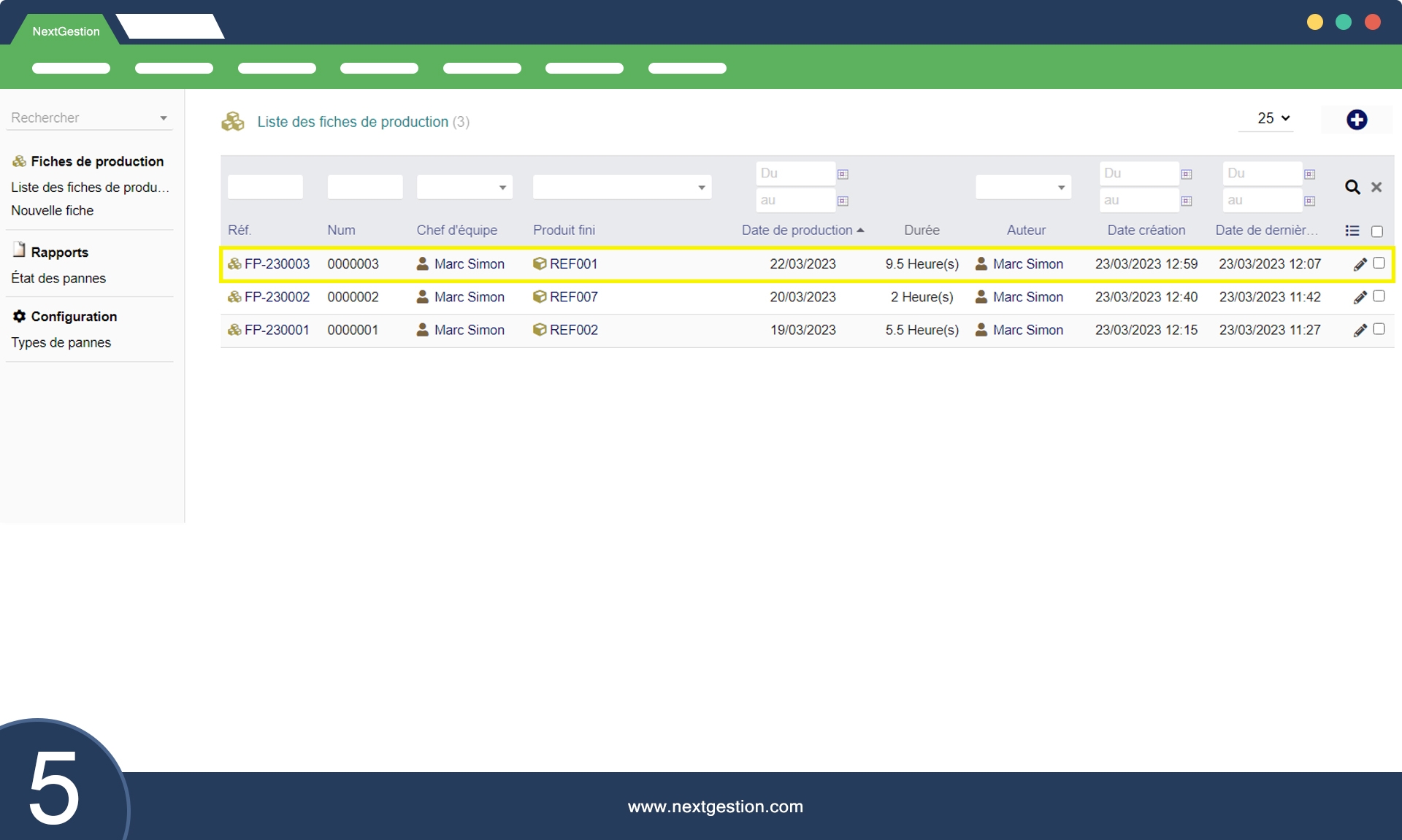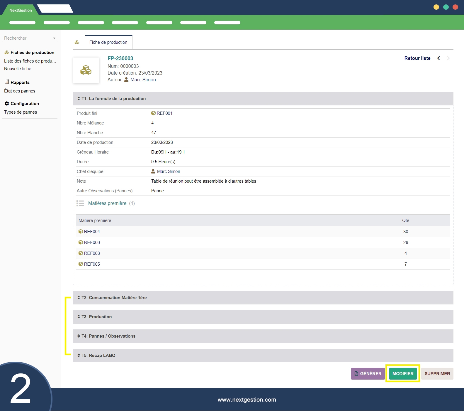 À chaque production, une fiche de production est générée automatiquement, facilitant ainsi la traçabilité et le suivi des opérations.