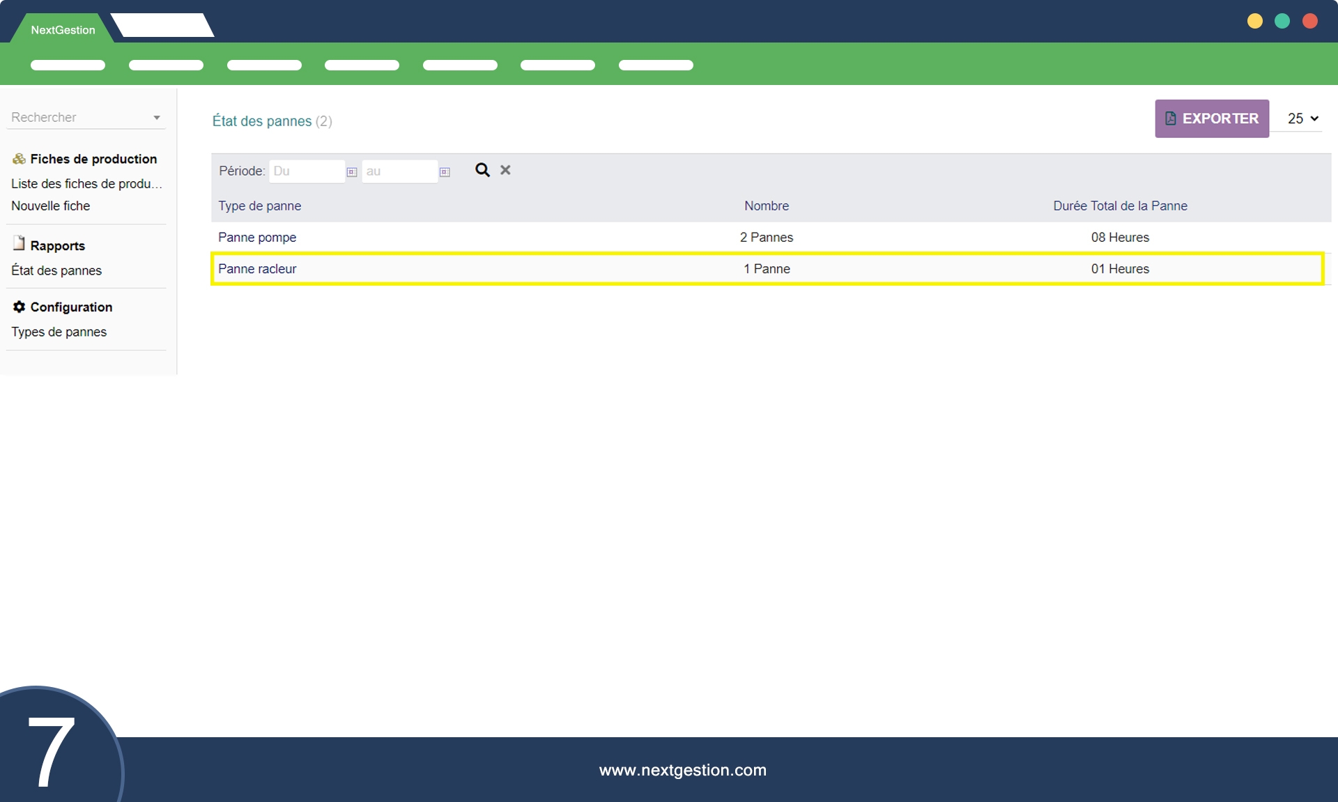 Identifiez les pannes les plus récurrentes et celles qui prennent le plus de temps à résoudre, afin d'améliorer l'efficacité de la production.