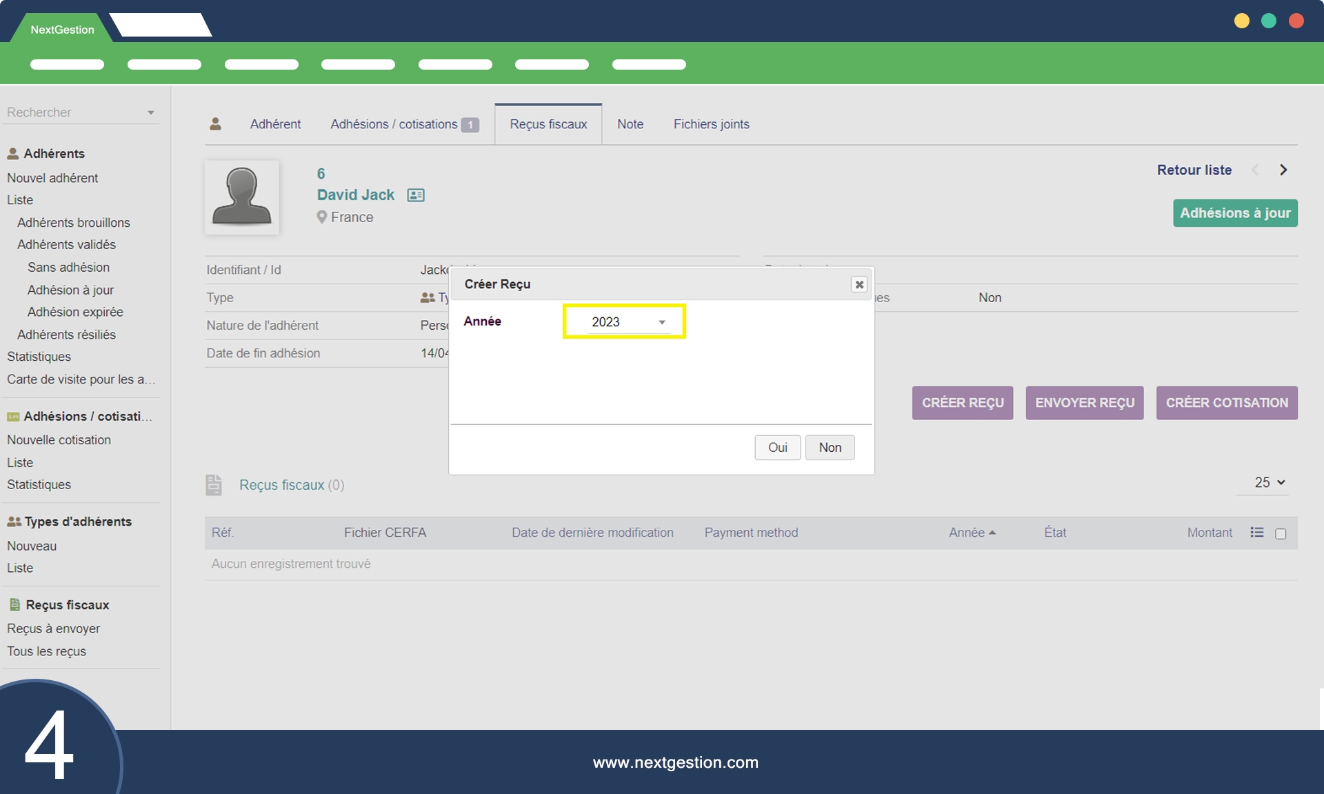 Le module "Reçu fiscal" est un outil informatique qui permet de générer des reçus fiscaux pour chaque adhérent d'une organisation après la création d'une cotisation. Les reçus fiscaux ainsi créés sont conformes aux normes et aux exigences du fichier CERFA.