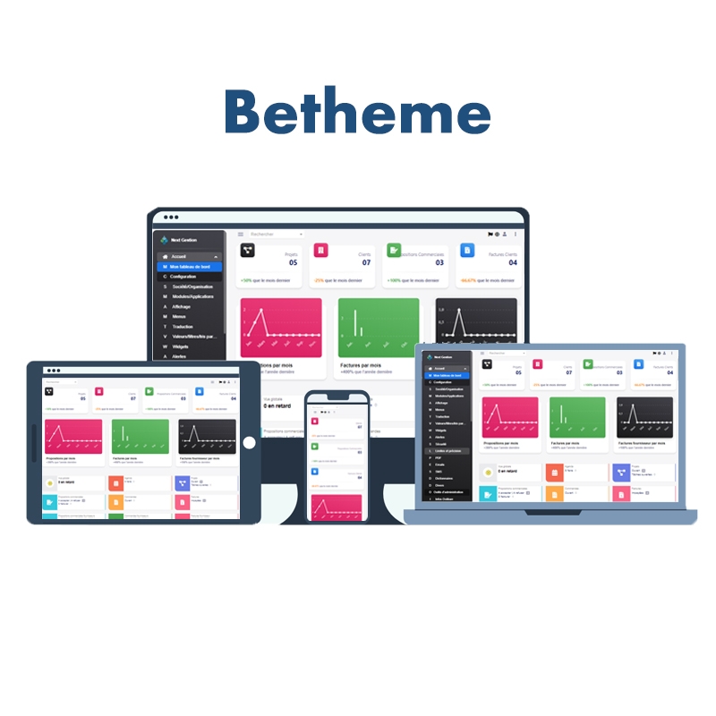 Betheme transforme complètement l’interface de Dolibarr. Le design est moderne, fluide et très agréable à utiliser au quotidien.