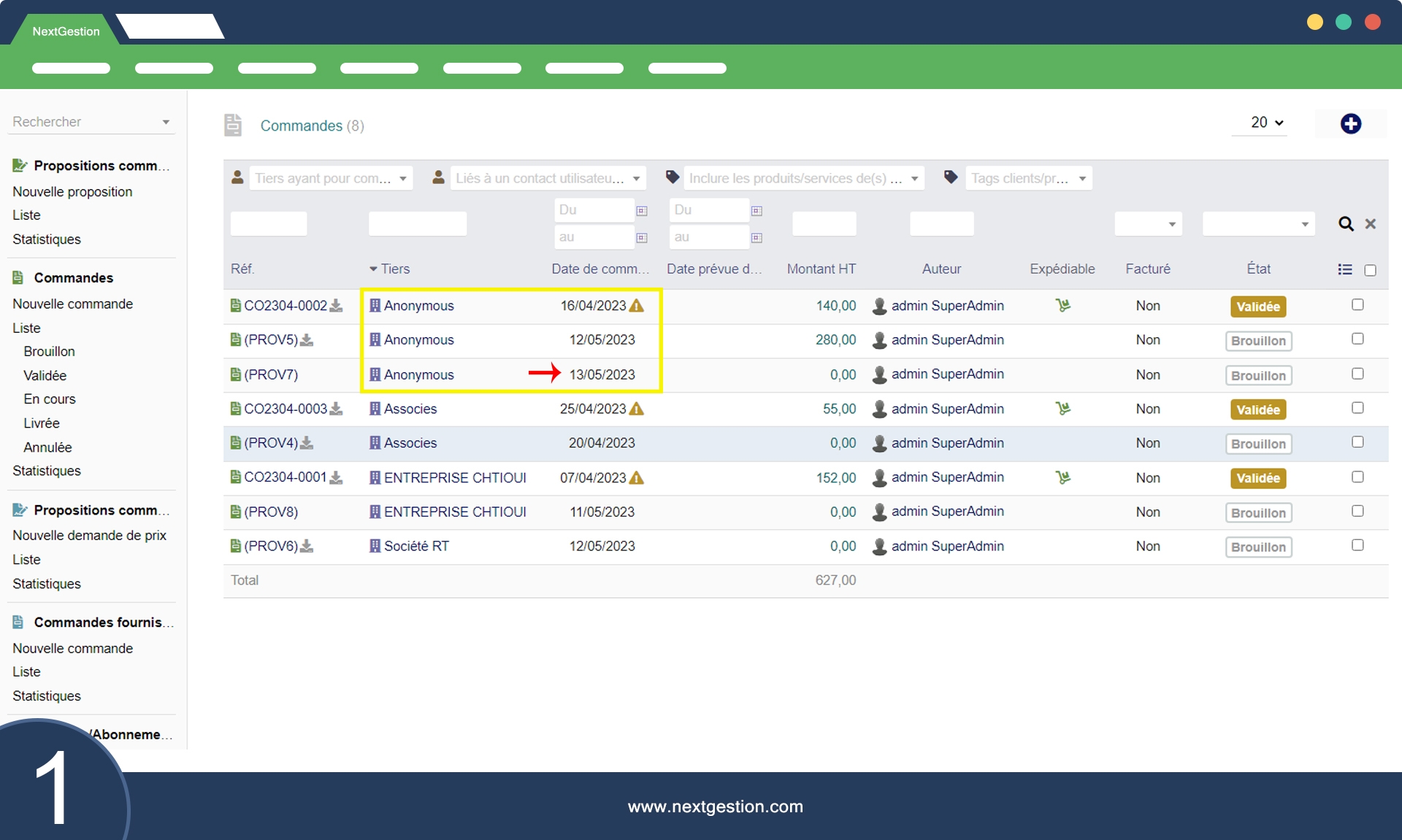 Le module "Date de réception en mouvement de stock" permet de consulter la date de la dernière commande sur la liste des tiers.