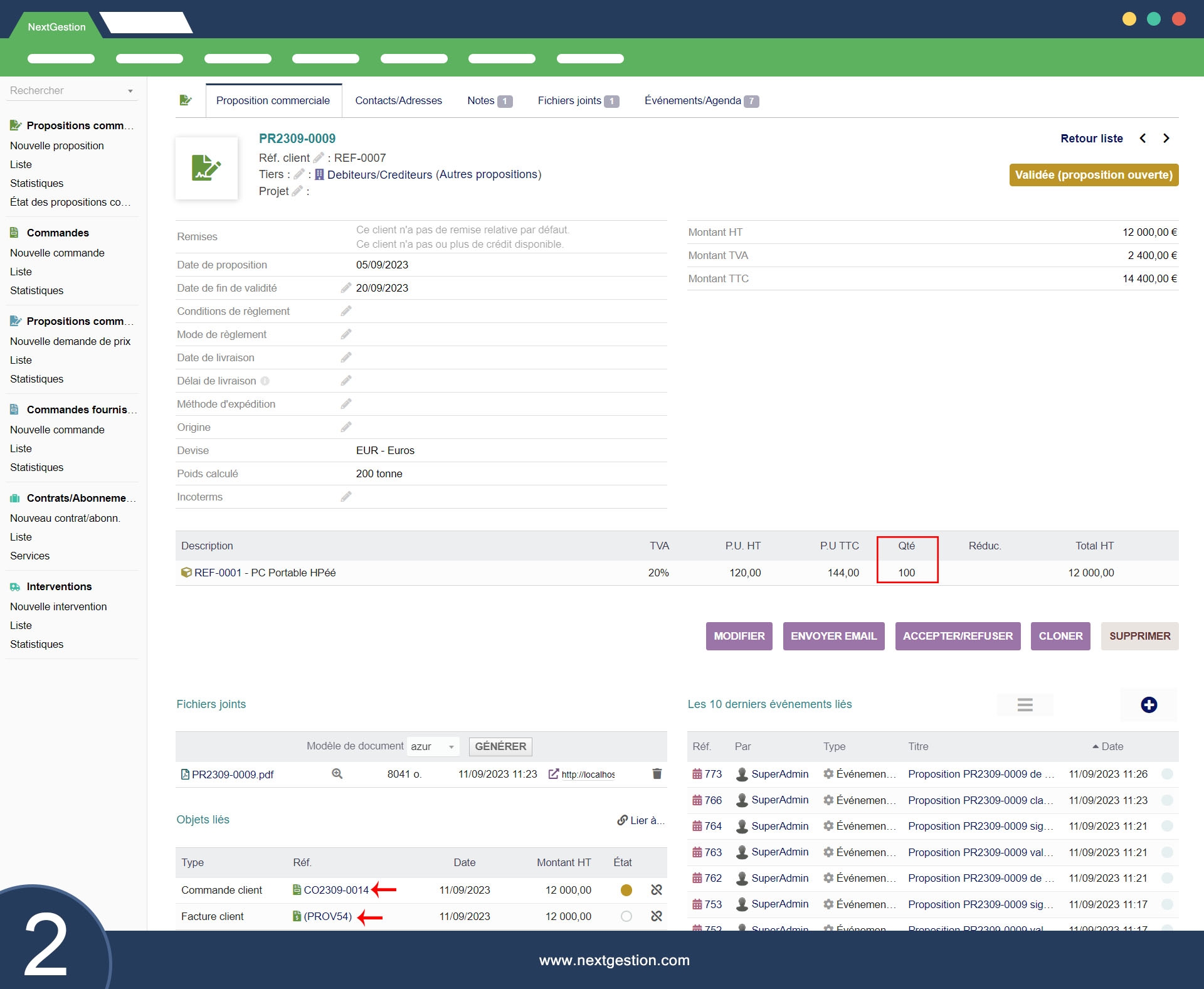 Fiche Commande : Obtenez une vue complète de chaque commande, y compris la quantité commandée, la quantité livrée, et la quantité restante à livrer. Consultez également les chargements associés à la commande et les livraisons (factures clients) liées à cette commande.