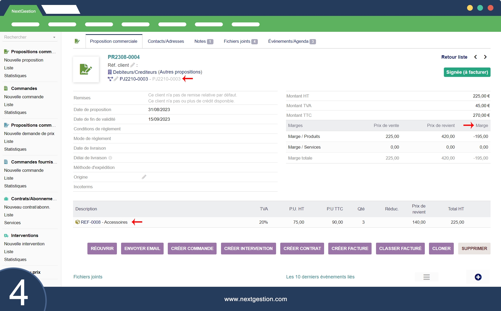 Marge Totale: Calculez facilement la marge totale de la proposition commerciale, vous permettant d'évaluer rapidement la rentabilité du projet associé.
