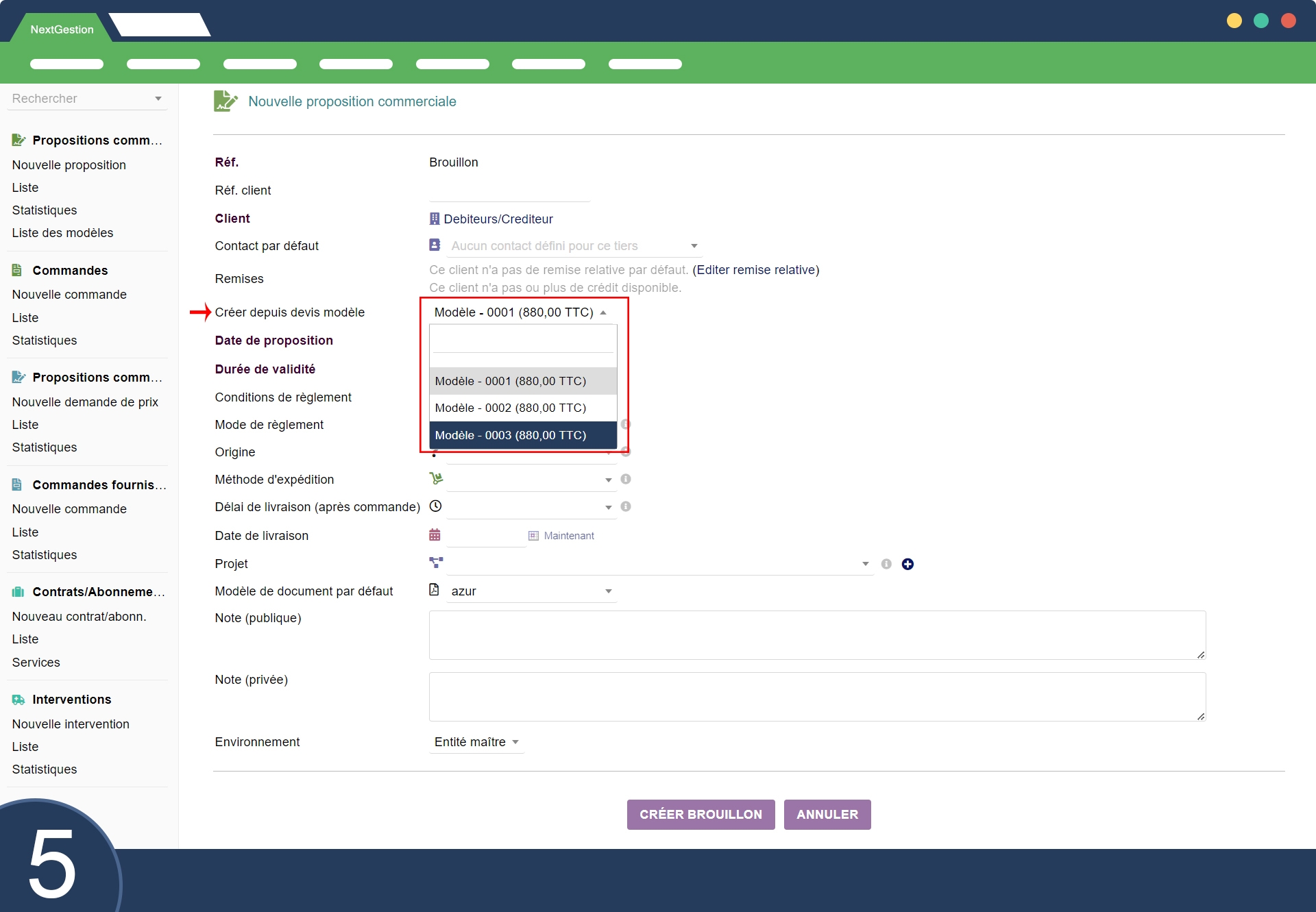 Avec "Proposition prédéfinie", la création de devis devient plus efficace et efficiente.
