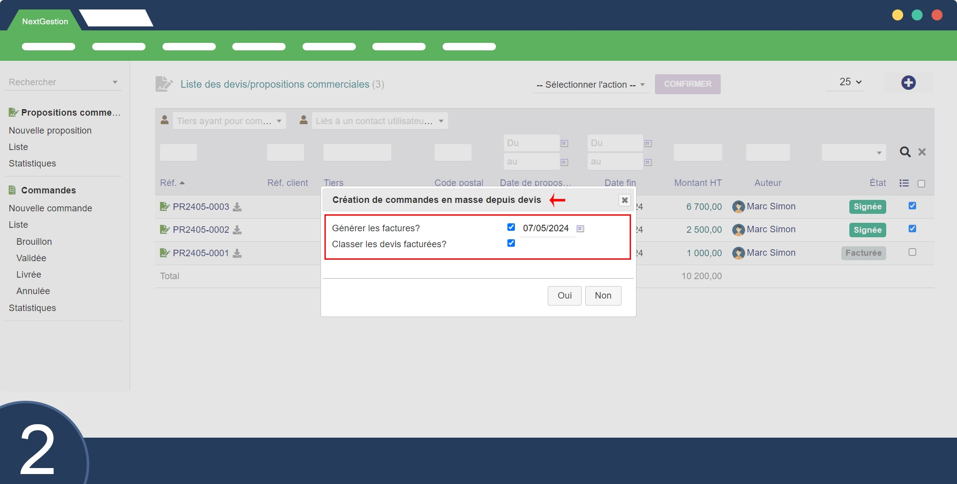 Le module "Création de commandes en masse depuis devis" vous permets de transformer en masse plusieurs commandes à partir vos devis, ou tout simplement générer plusieurs commandes à partir vos propositions commerciales sur Dolibarr.