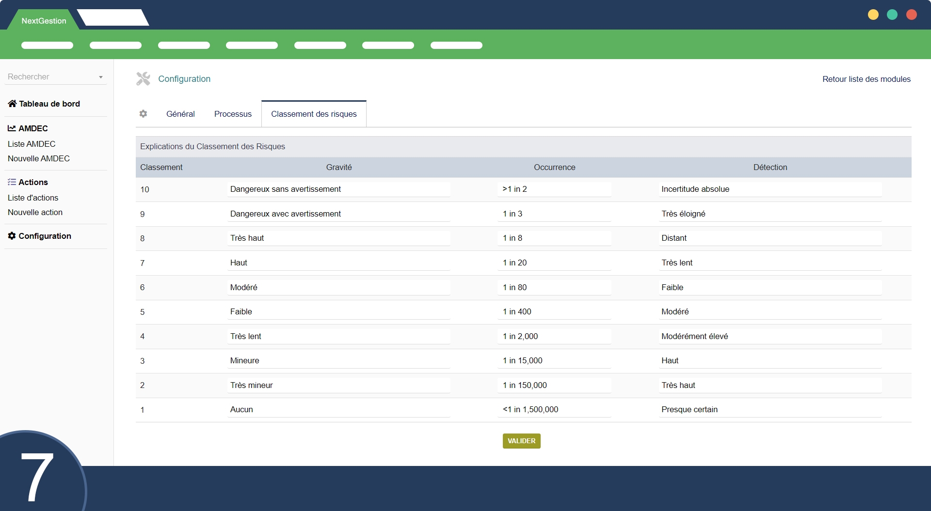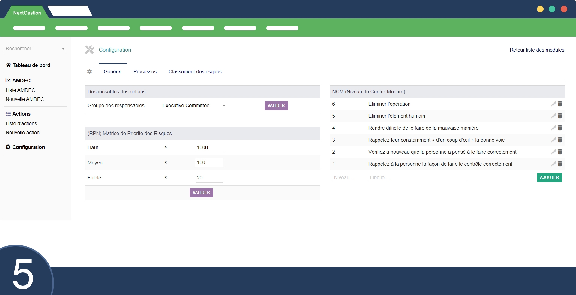 Résumé des fonctionnalités de Module AMDEC :