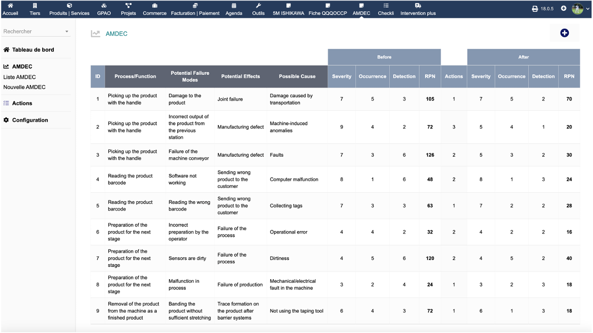L'Analyse des Modes de Défaillance, de leurs Effets et de leur Criticité (AMDEC) est une méthodologie utilisée pour identifier et évaluer les risques potentiels dans les processus de production ou de conception. Le module AMDEC de Dolibarr permet aux entreprises de mettre en œuvre cette méthode de manière systématique et efficace.