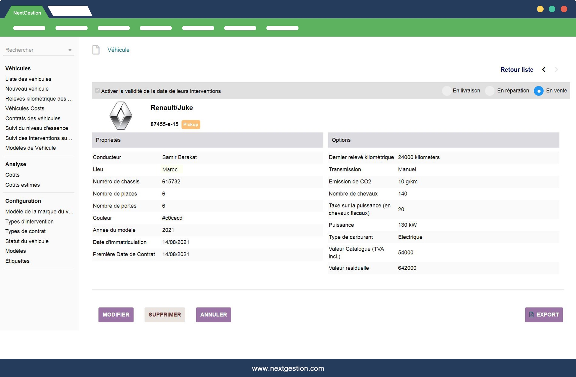 Module complet pour gérer notre parc automobile. Suivi des véhicules, contrats et entretien très pratique.