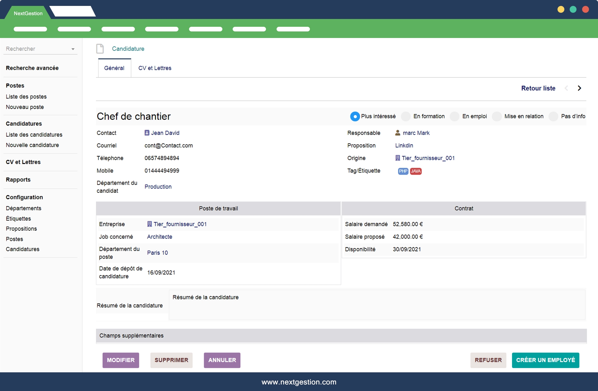 A very practical solution for recruitment agencies using Dolibarr.