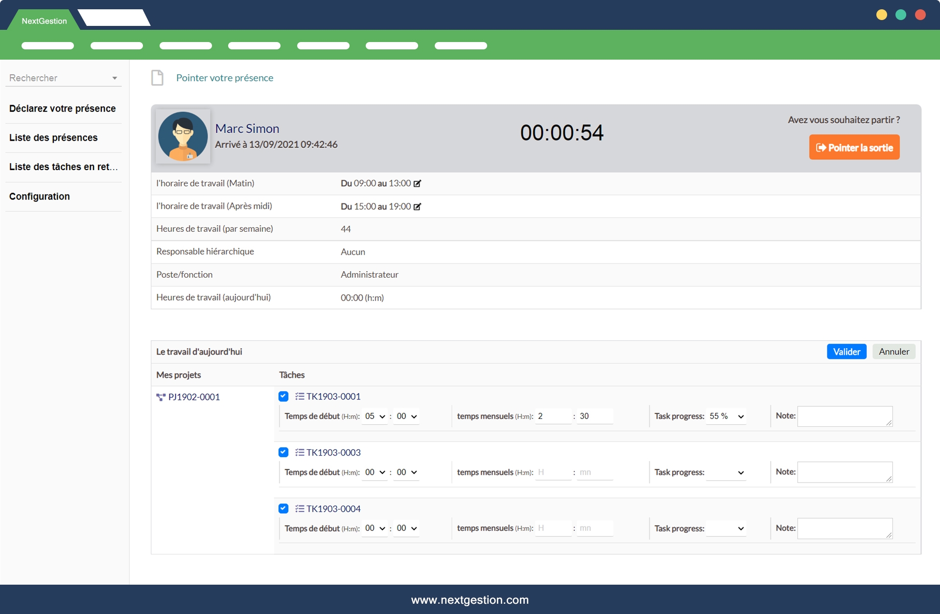 Module très utile pour le suivi du temps. La pointeuse numérique est simple et efficace