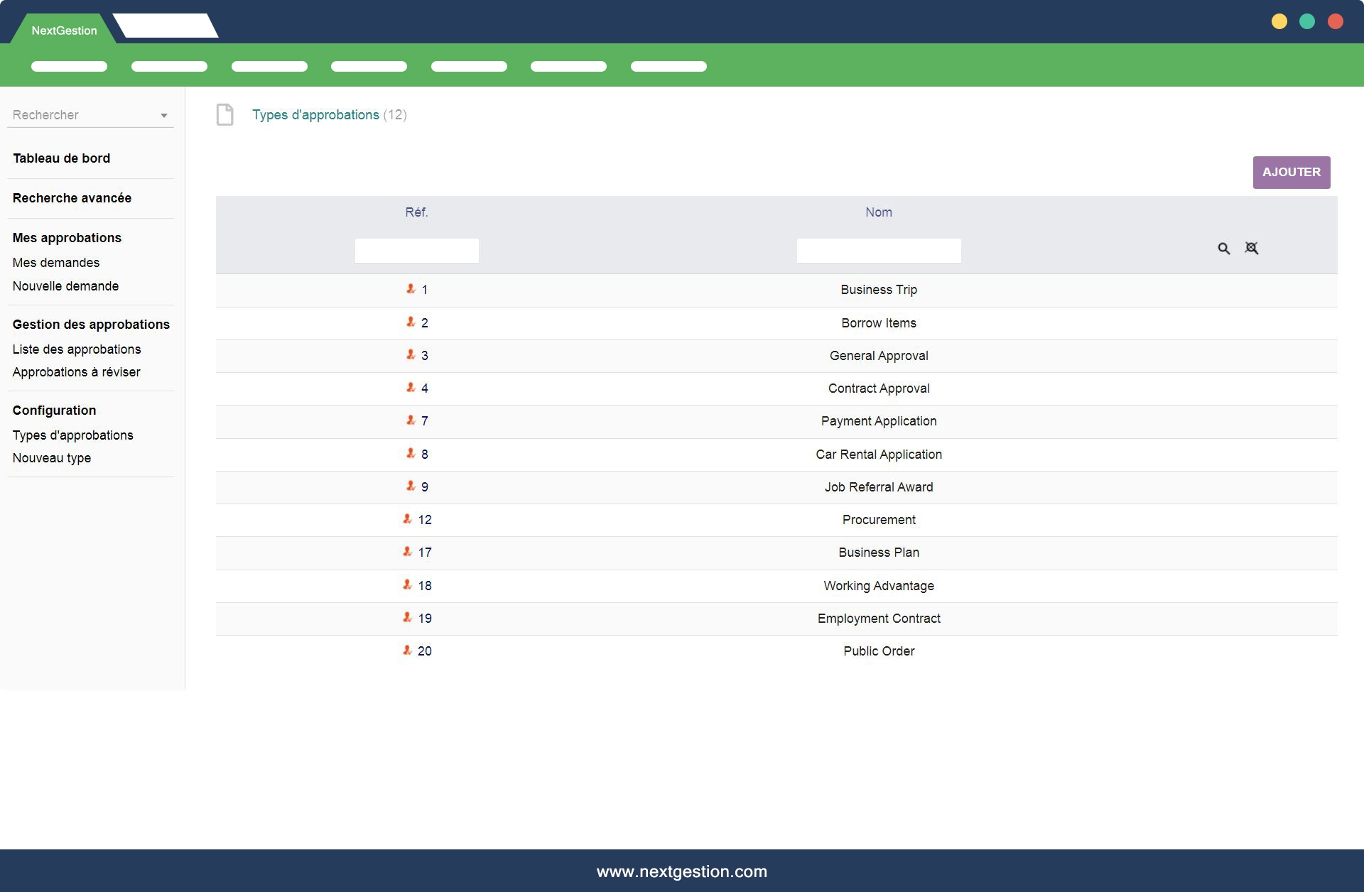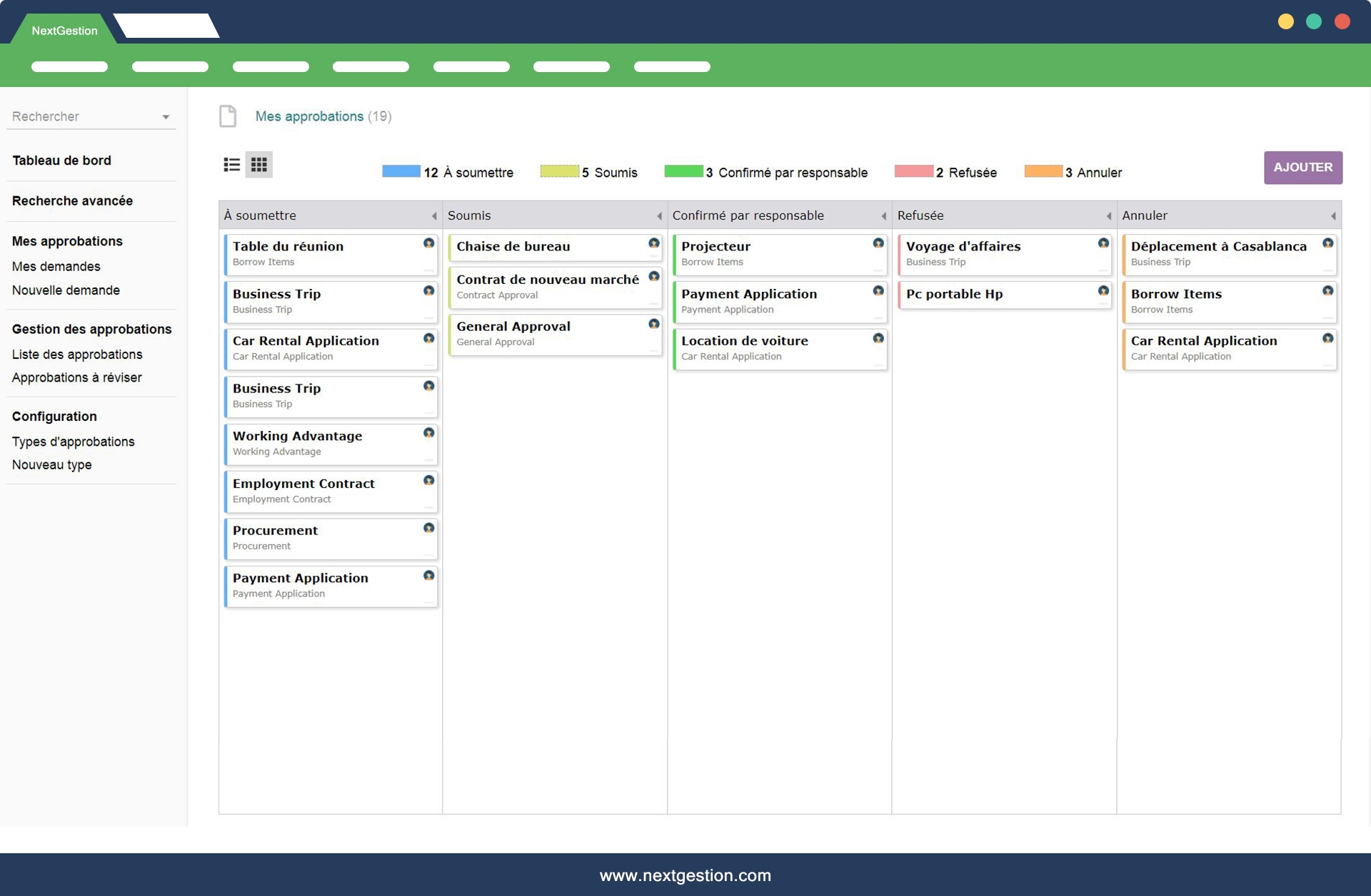 1- Choisissez qui décide Chaque demande a ses approbateurs. Sélectionnez la personne qui doit approuver chaque demande, même si ce n’est pas le responsable. Avez-vous besoin des approbations du comptable et du gestionnaire? Vous pouvez décider de demander les deux pour n'importe quel type d'approbation. 2- Gagnez du temps en gérant Les demandes de vos employés Tout au même endroit. La gestion de vos demandes en toute simplicité. Les déplacements, les fournitures de bureau, le paiement, toutes les demandes soumises peuvent être créées, validées ou refusées en quelques secondes à partir de votre tableau de bord d'approbation. 3- Votre entreprise, vos types Créez les types d'approbations dont vous avez besoin. Créez facilement les types d'approbation qui répondent à vos besoins avec un configurateur intuitif. Demandez à vos employés les informations dont vous avez besoin avant d’approuver toute demande. Login: demoMot de Passe: demoSi vous commandez notre module vous bénéficiez de: